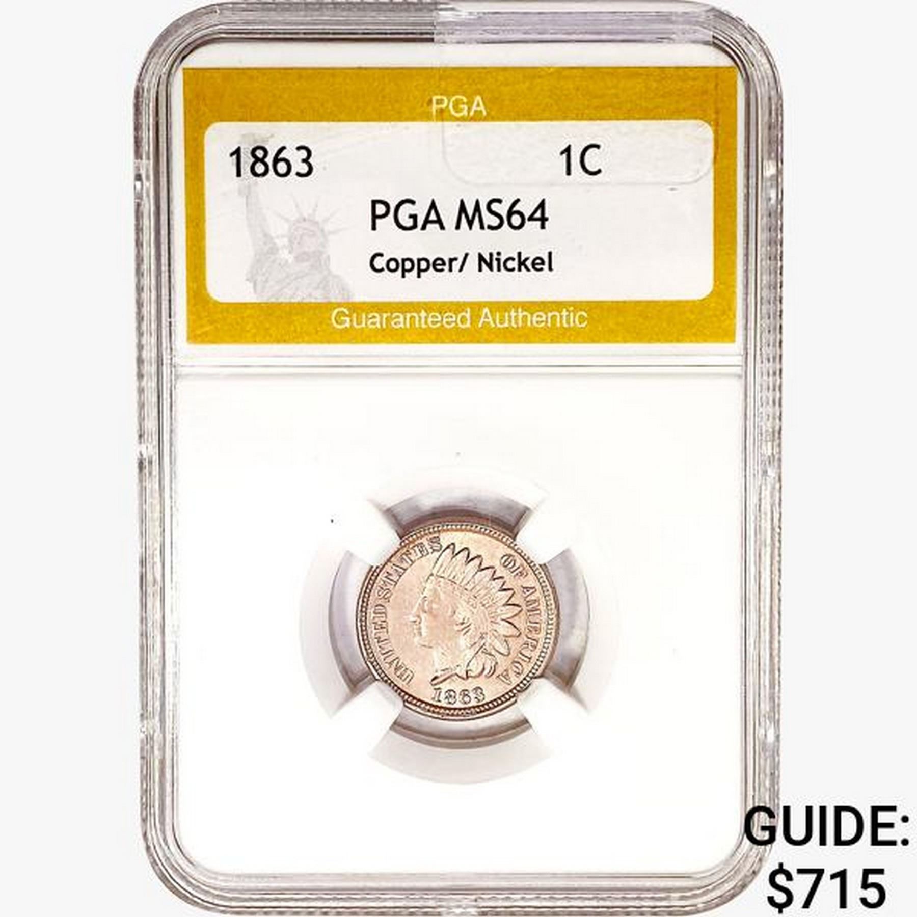 1863 Indian Head Cent PGA MS64 Copper/Nickel