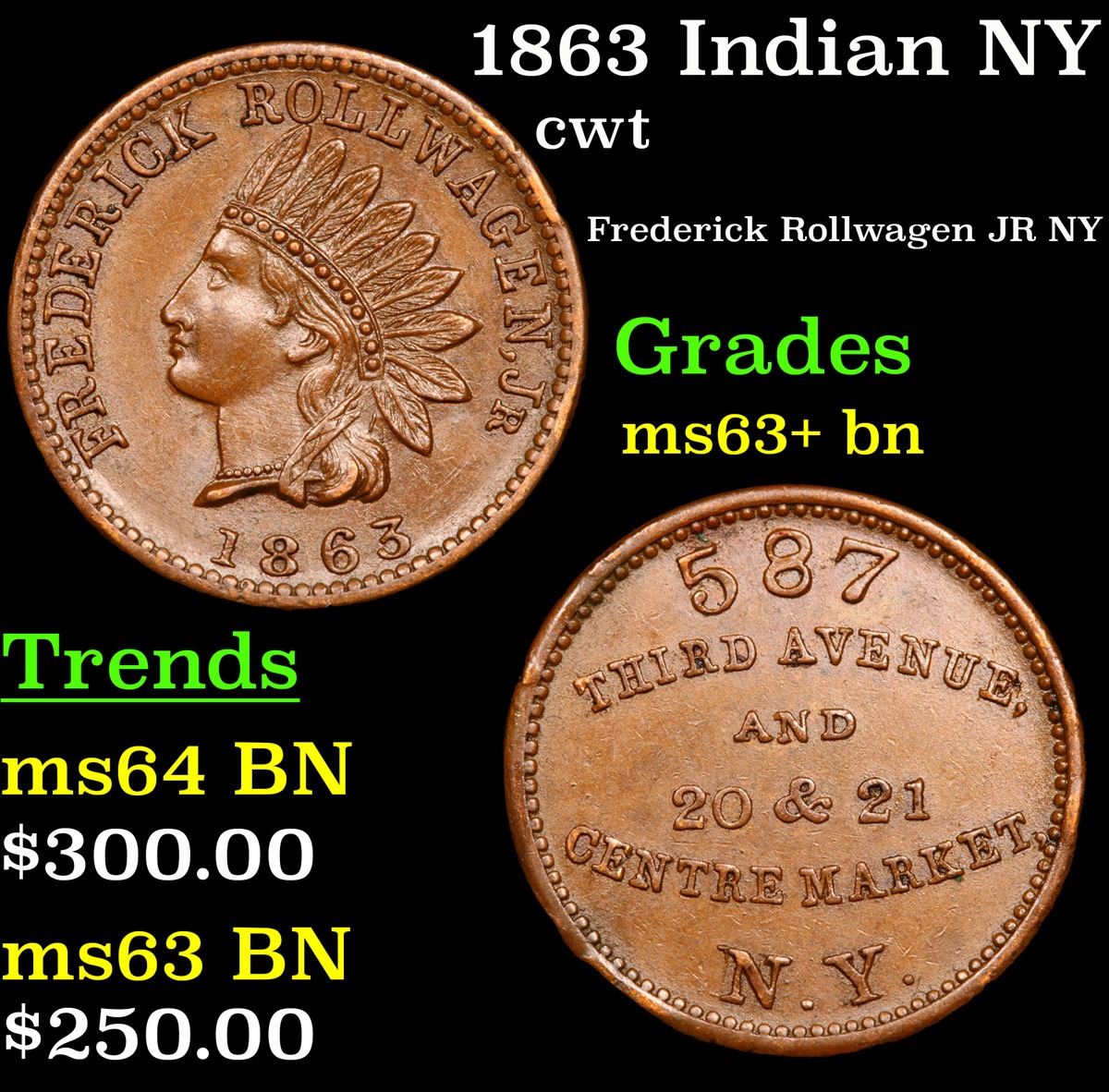1863 Indian NY Civil War Token 1c Grades Select+ Unc BN.