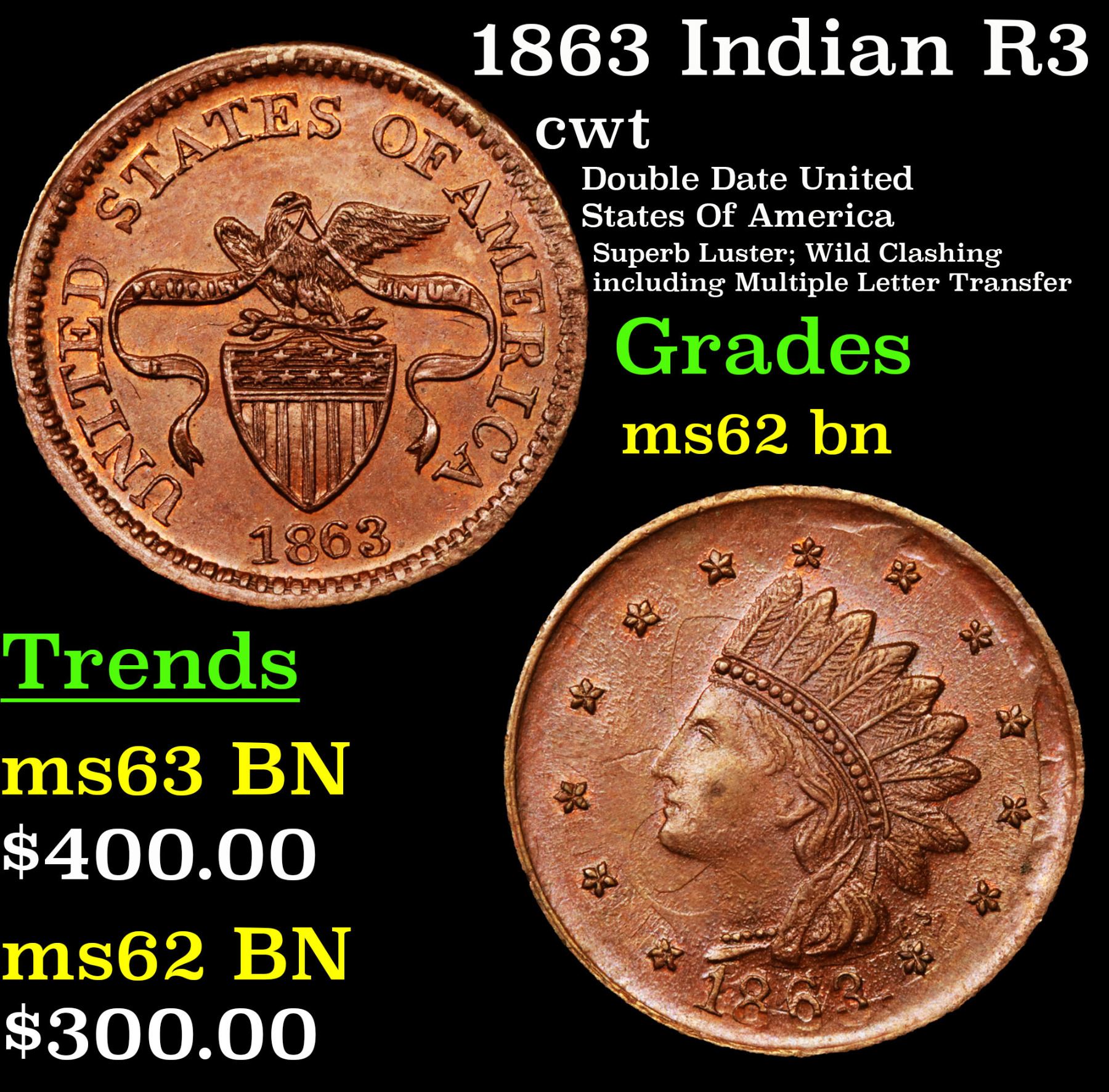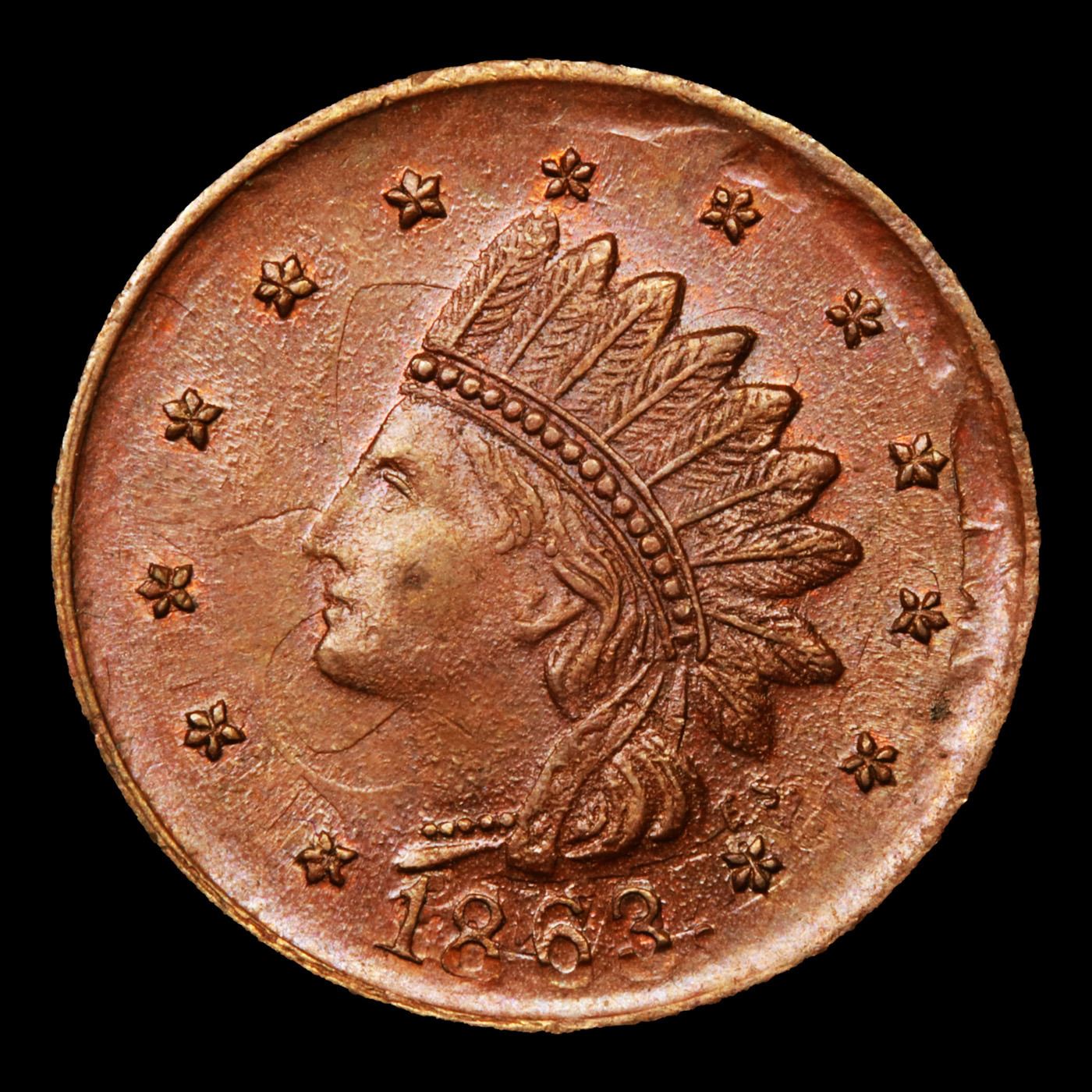 1863 Indian R3 Civil War Token 1c Grades Select Unc BN.