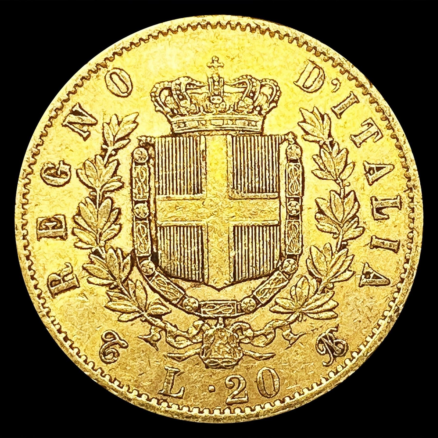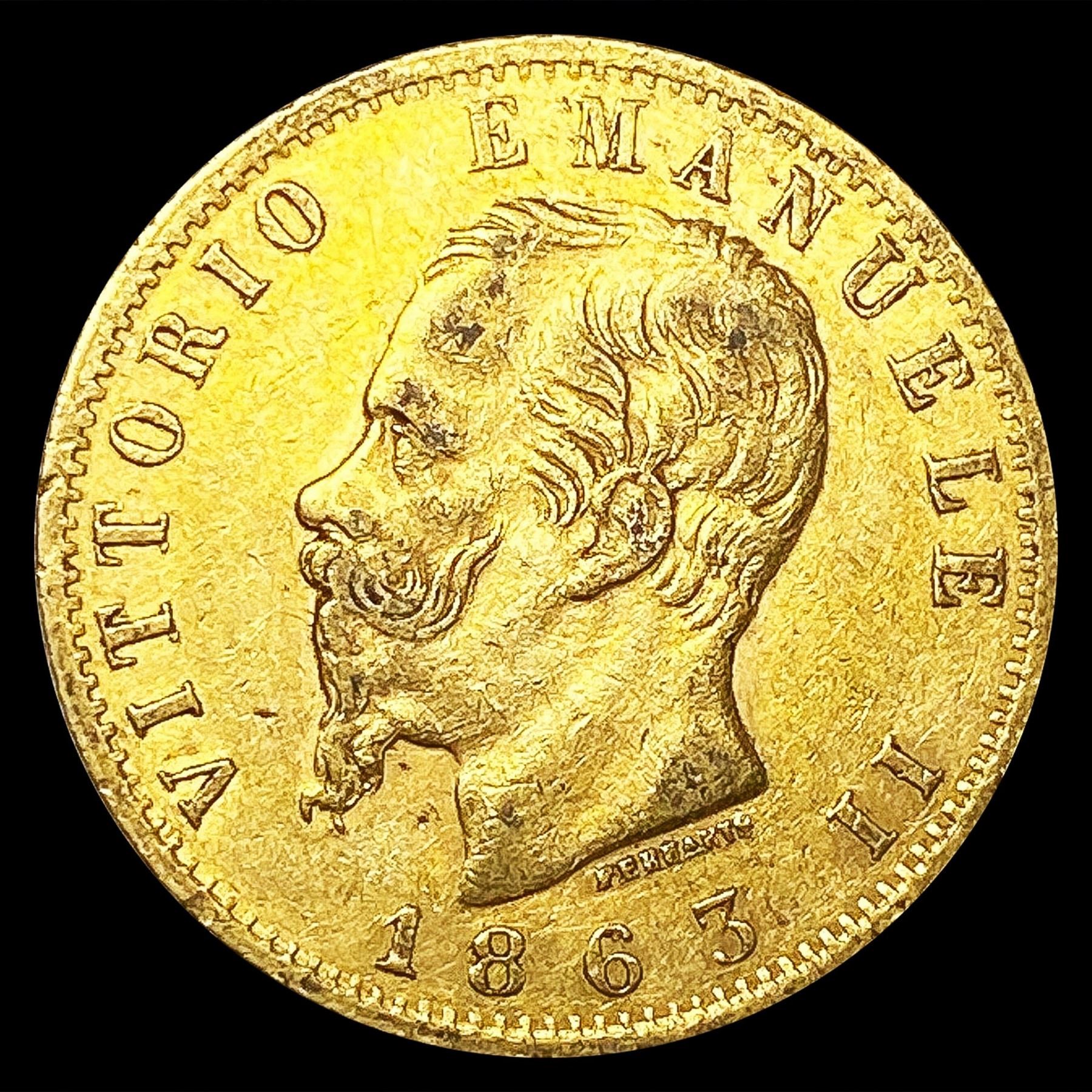 1863 Italy .1867oz Gold 20 Lire CLOSELY UNCIRCULAT