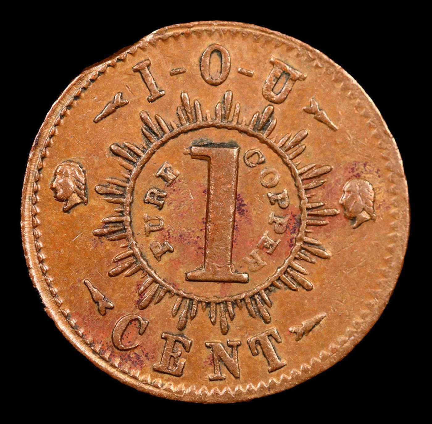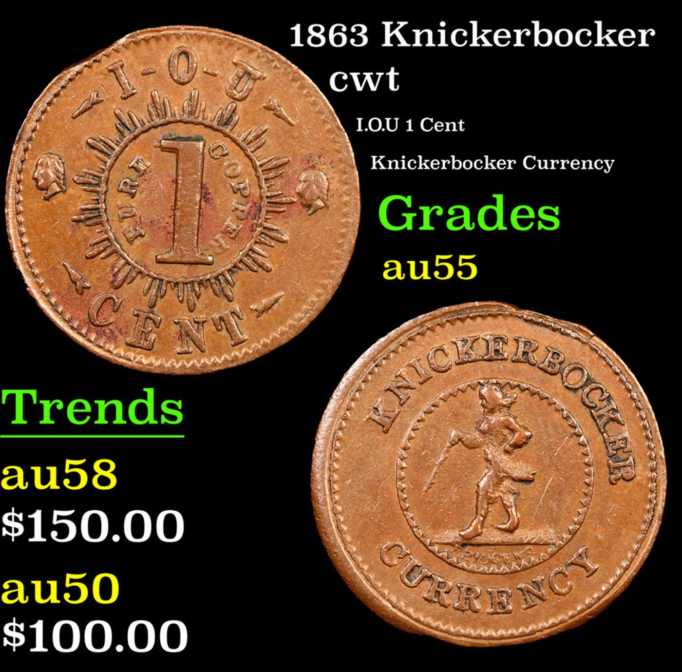 1863 Knickerbocker Civil War Token 1c Grades Choice AU.