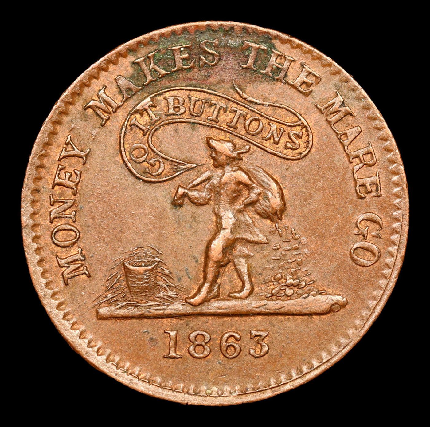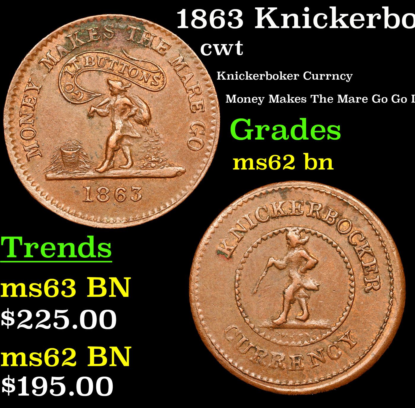1863 Knickerbocker Civil War Token 1c Grades Select Unc BN.