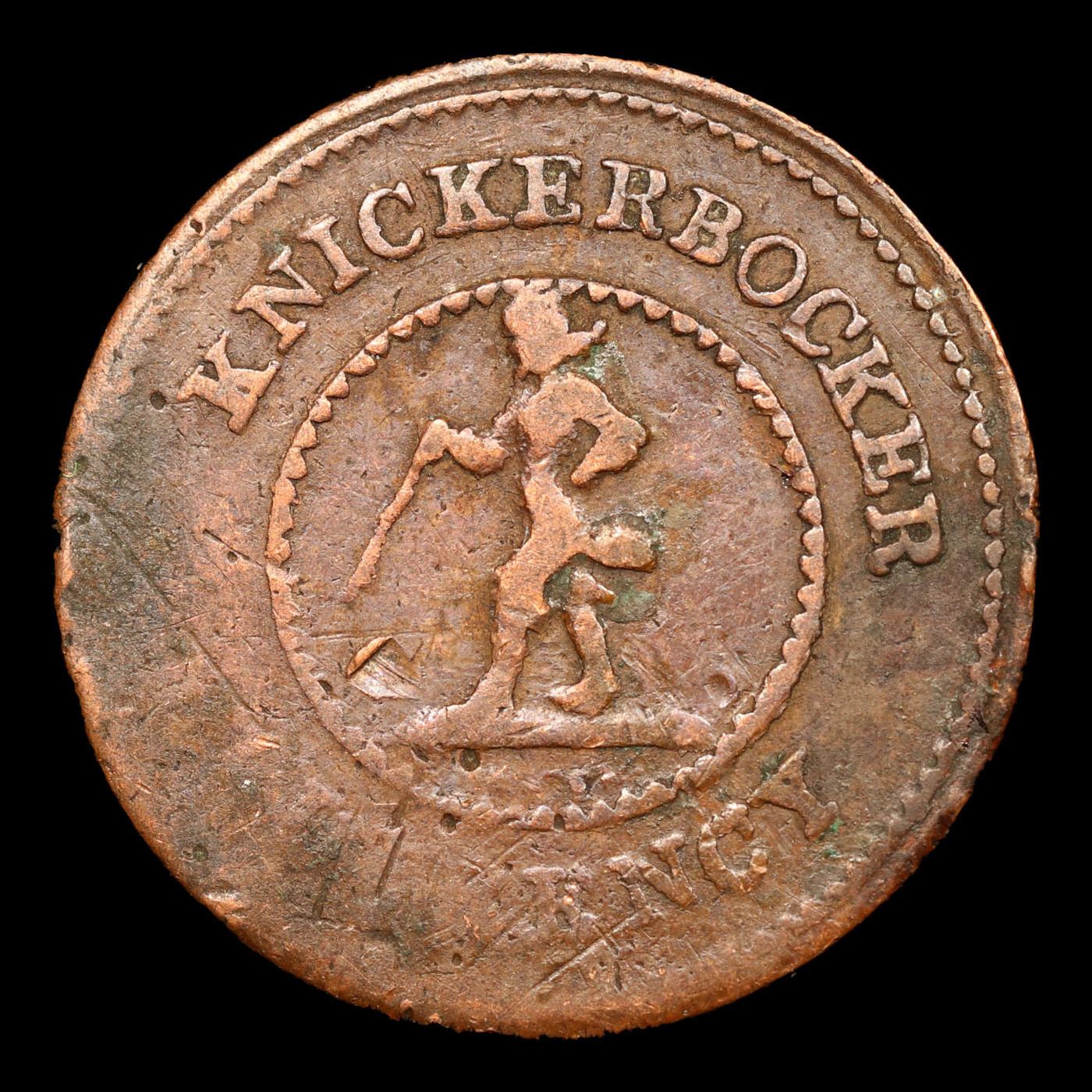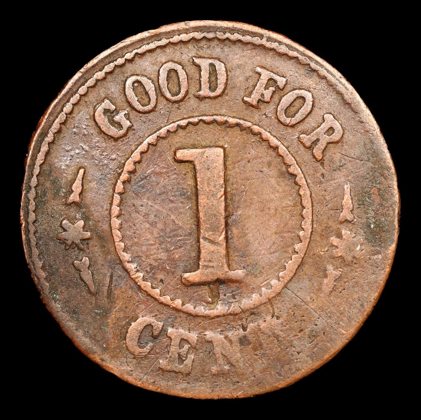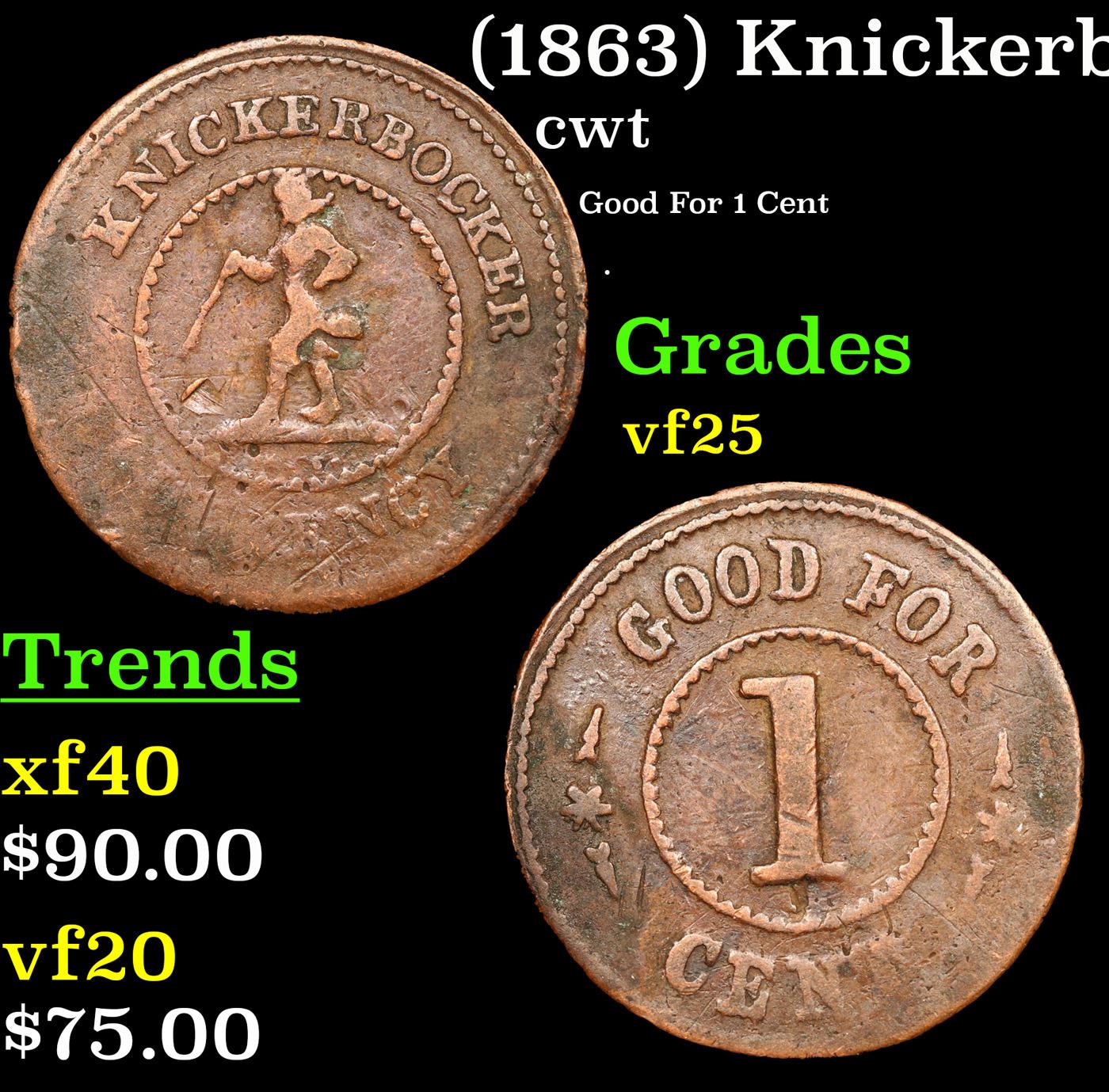 (1863) Knickerbocker Civil War Token 1c Grades vf+.