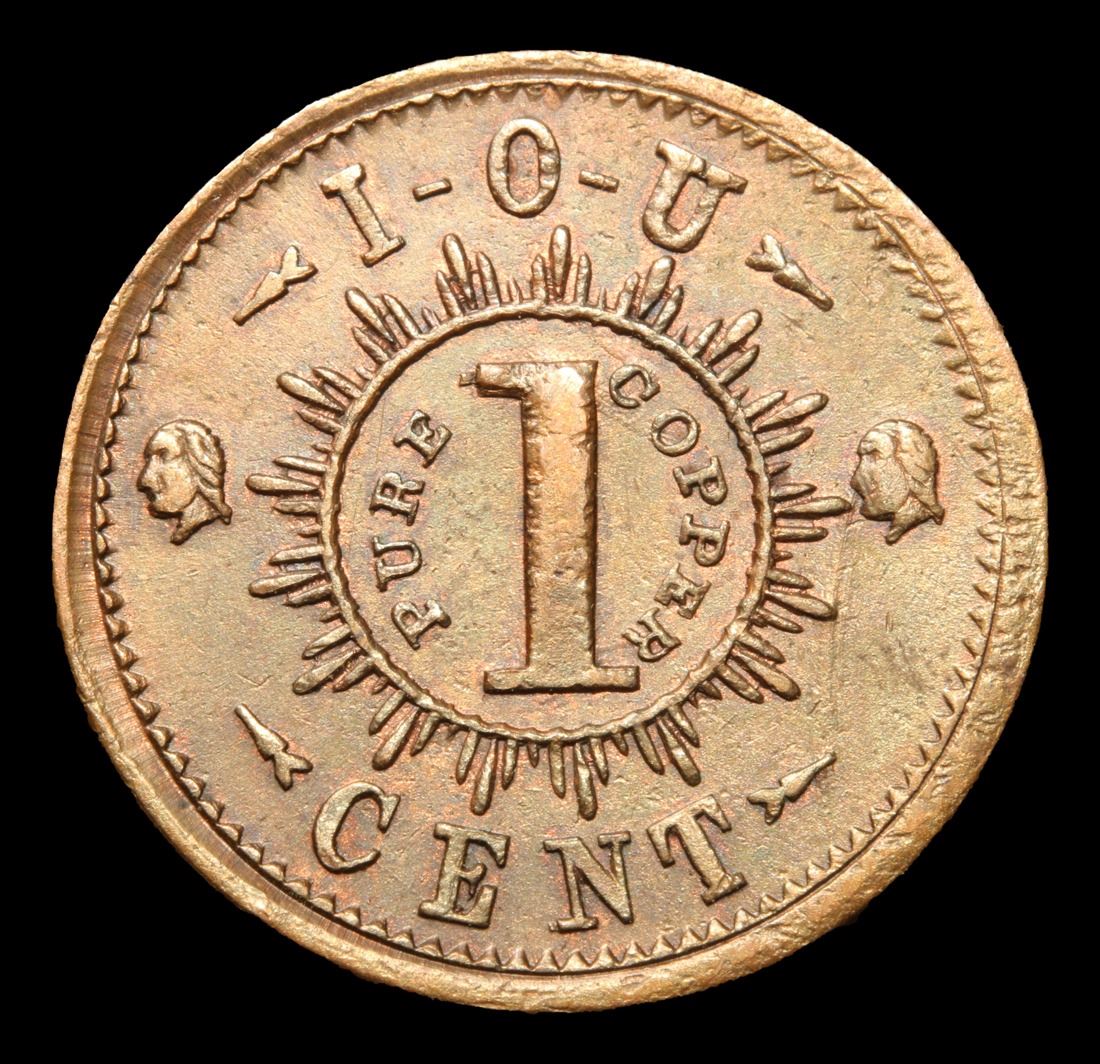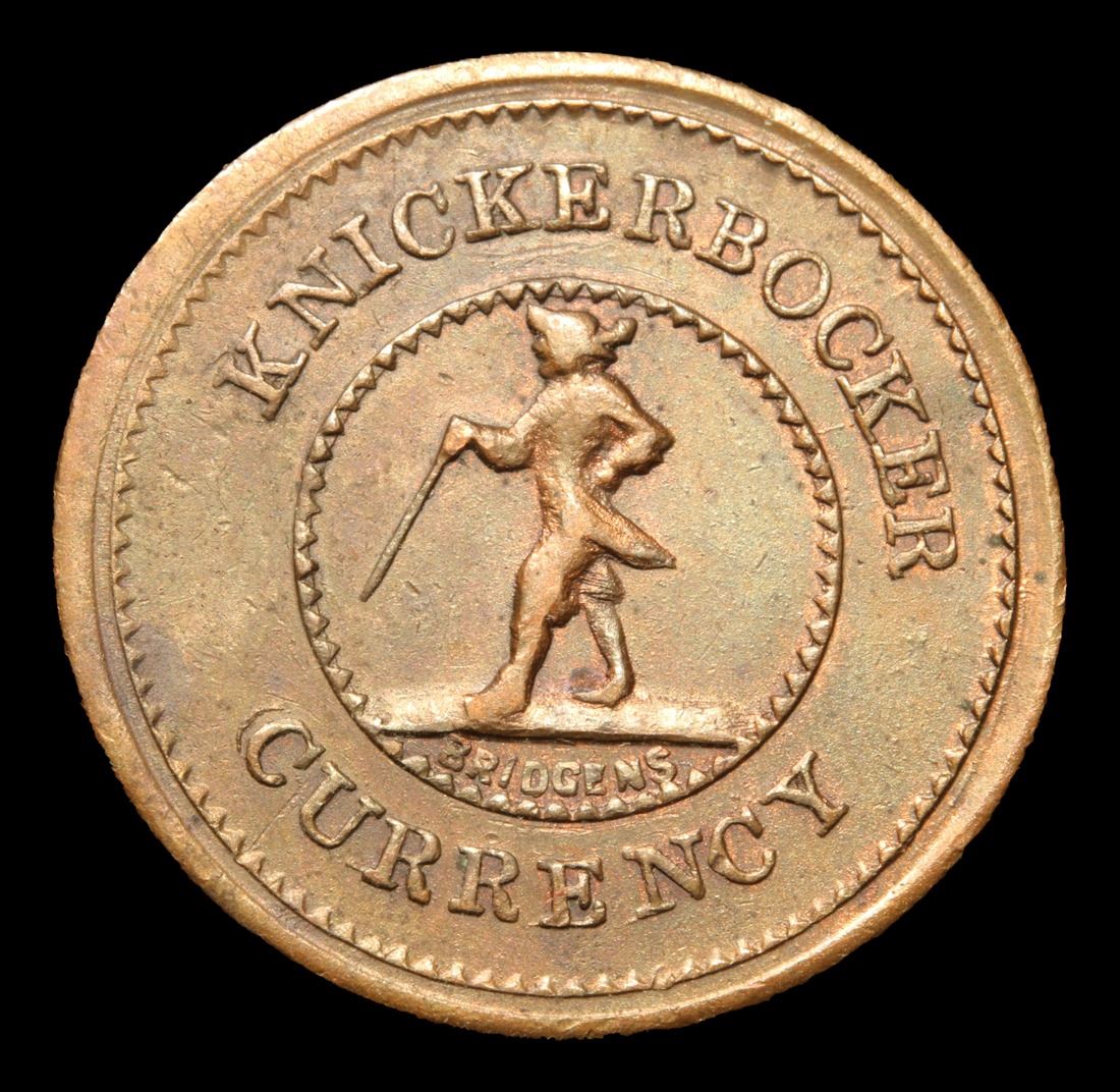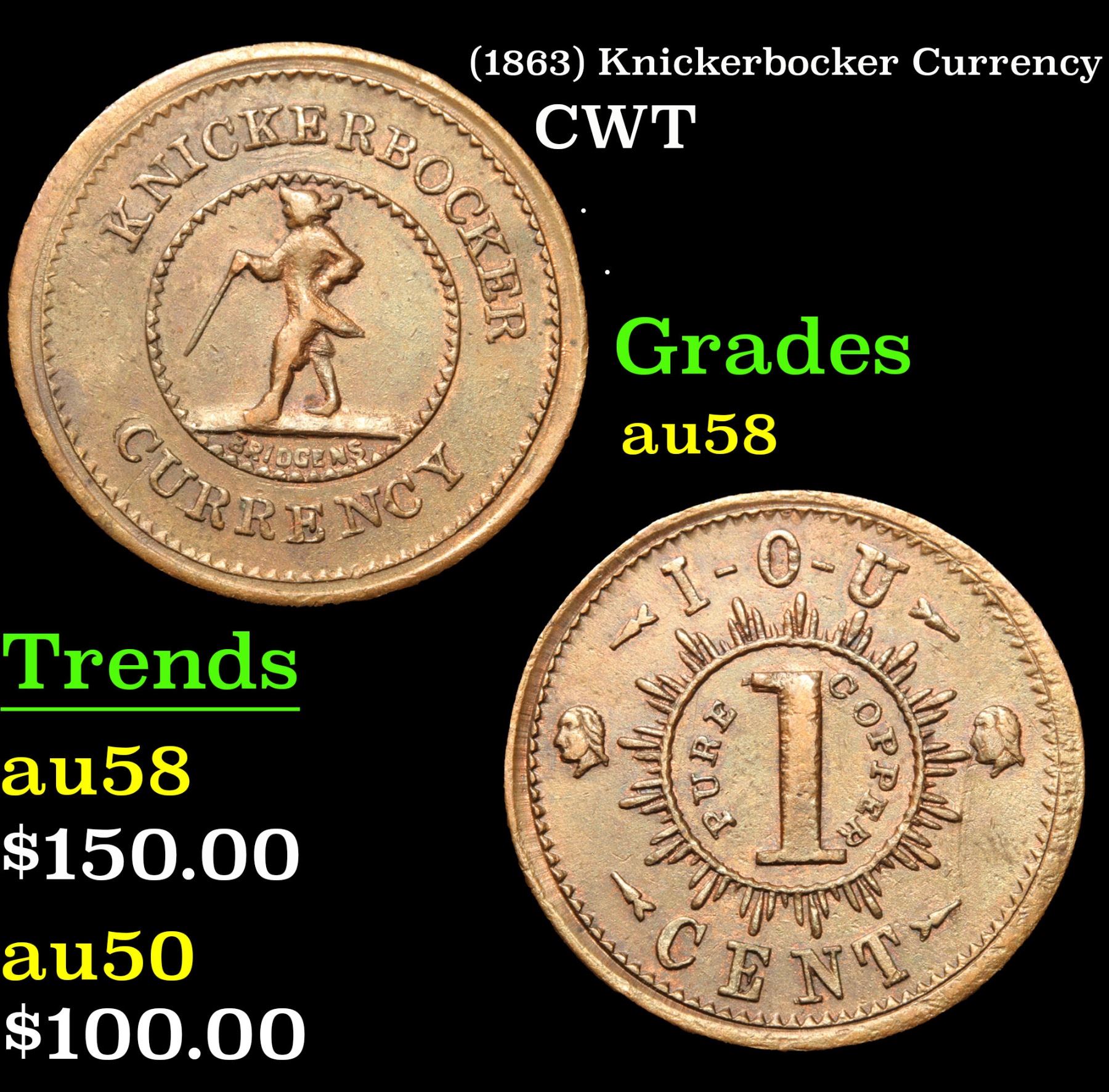 (1863) Knickerbocker Currency . . Civil War Token 1c Grades Choice AU/BU Slider.