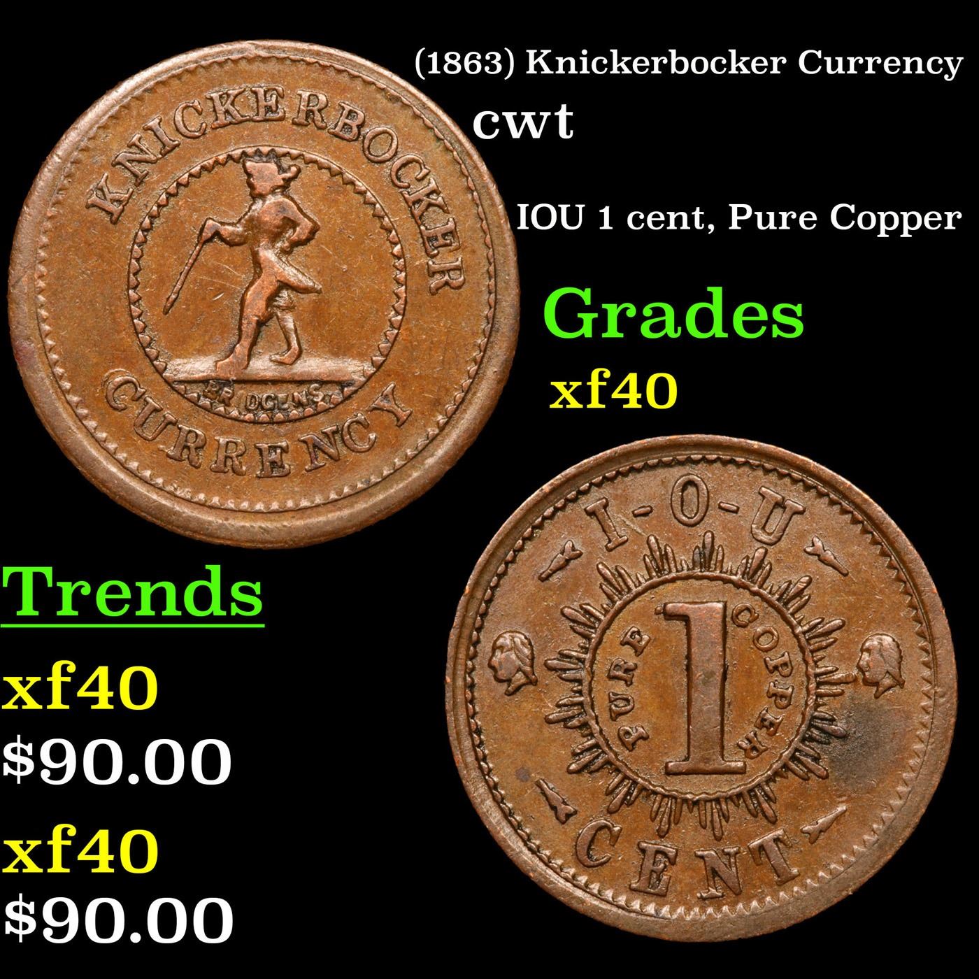 (1863) Knickerbocker Currency Civil War Token 1c Grades xf.