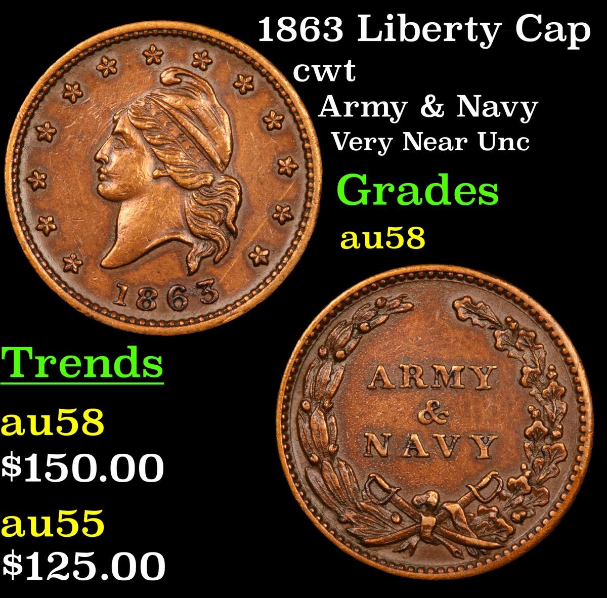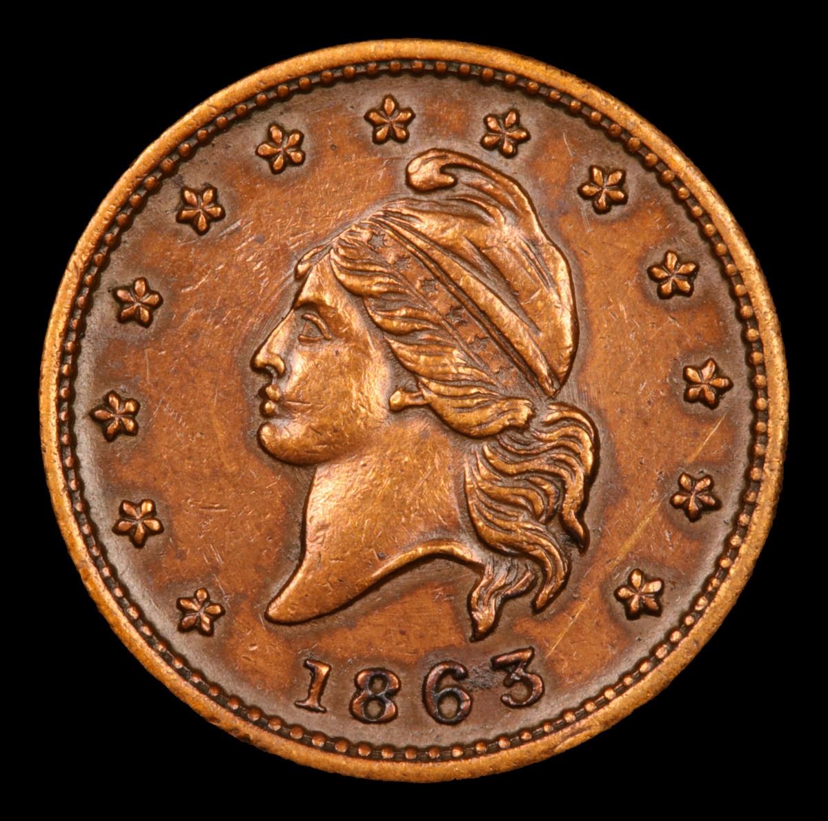 1863 Liberty Cap Civil War Token 1c Grades Choice AU/BU Slider.