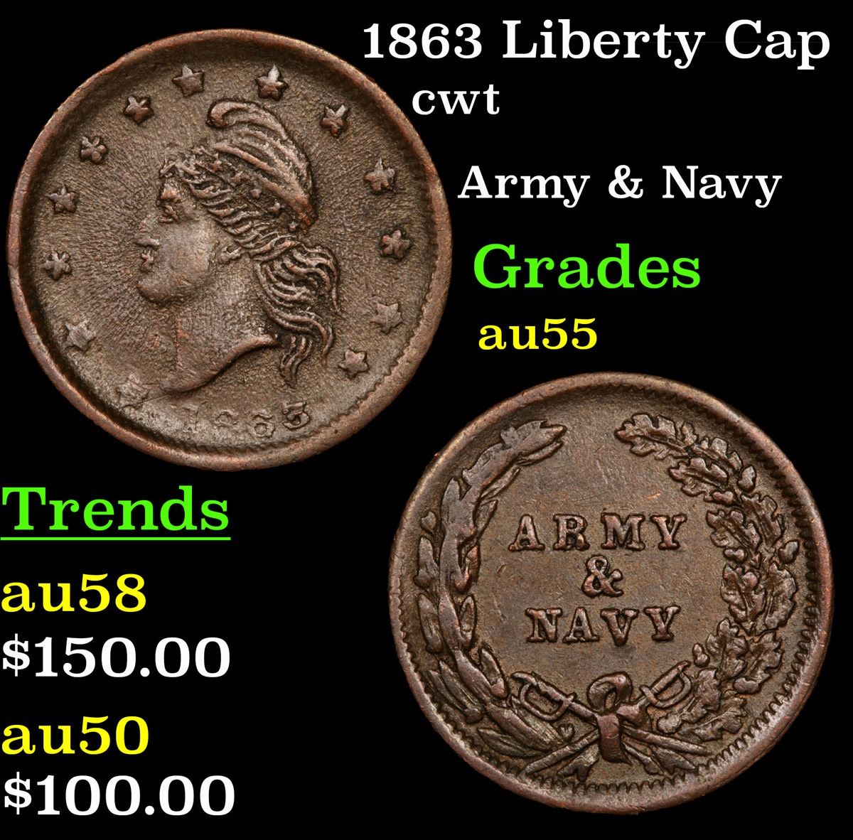 1863 Liberty Cap Civil War Token 1c Grades Choice AU.