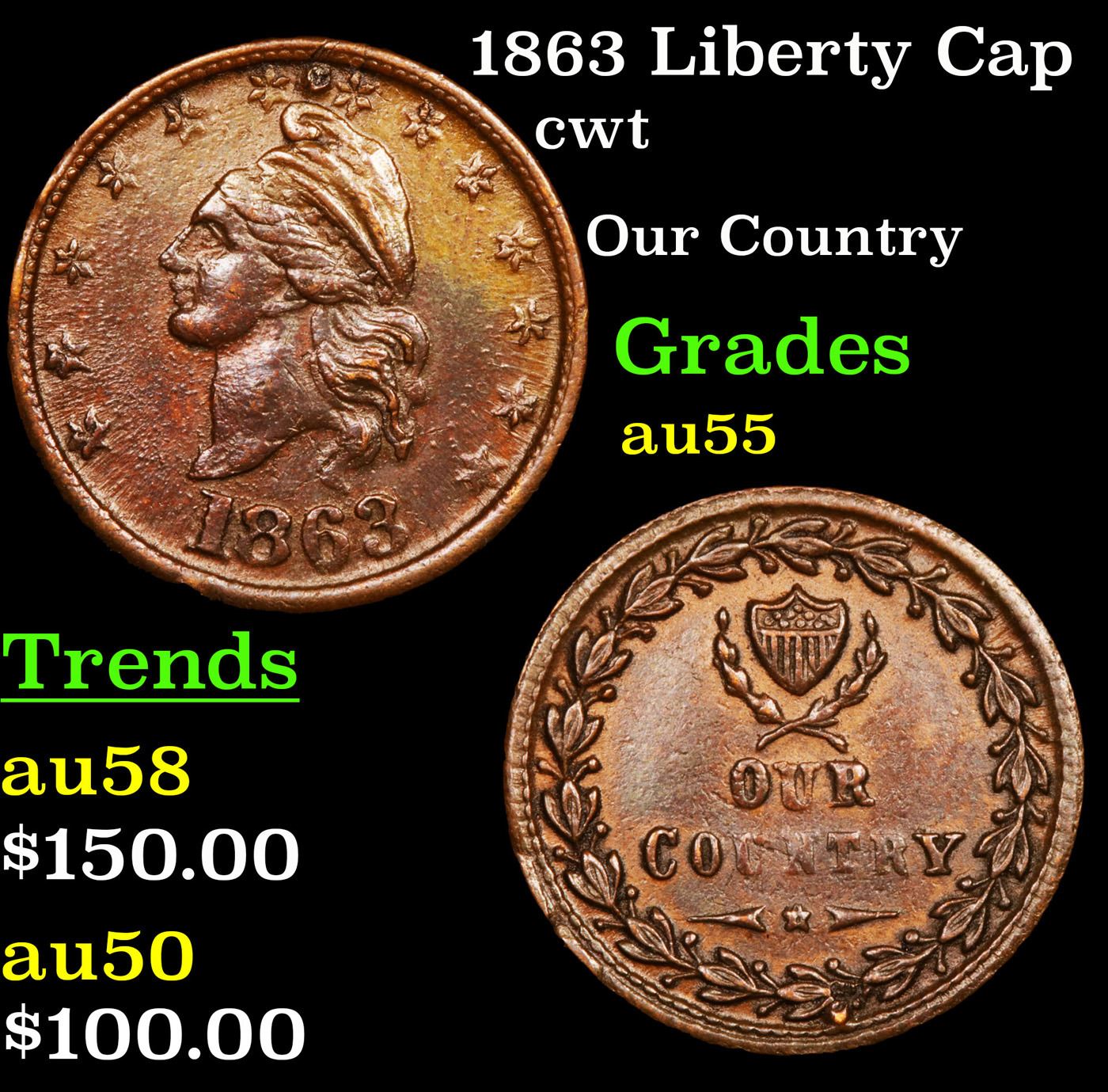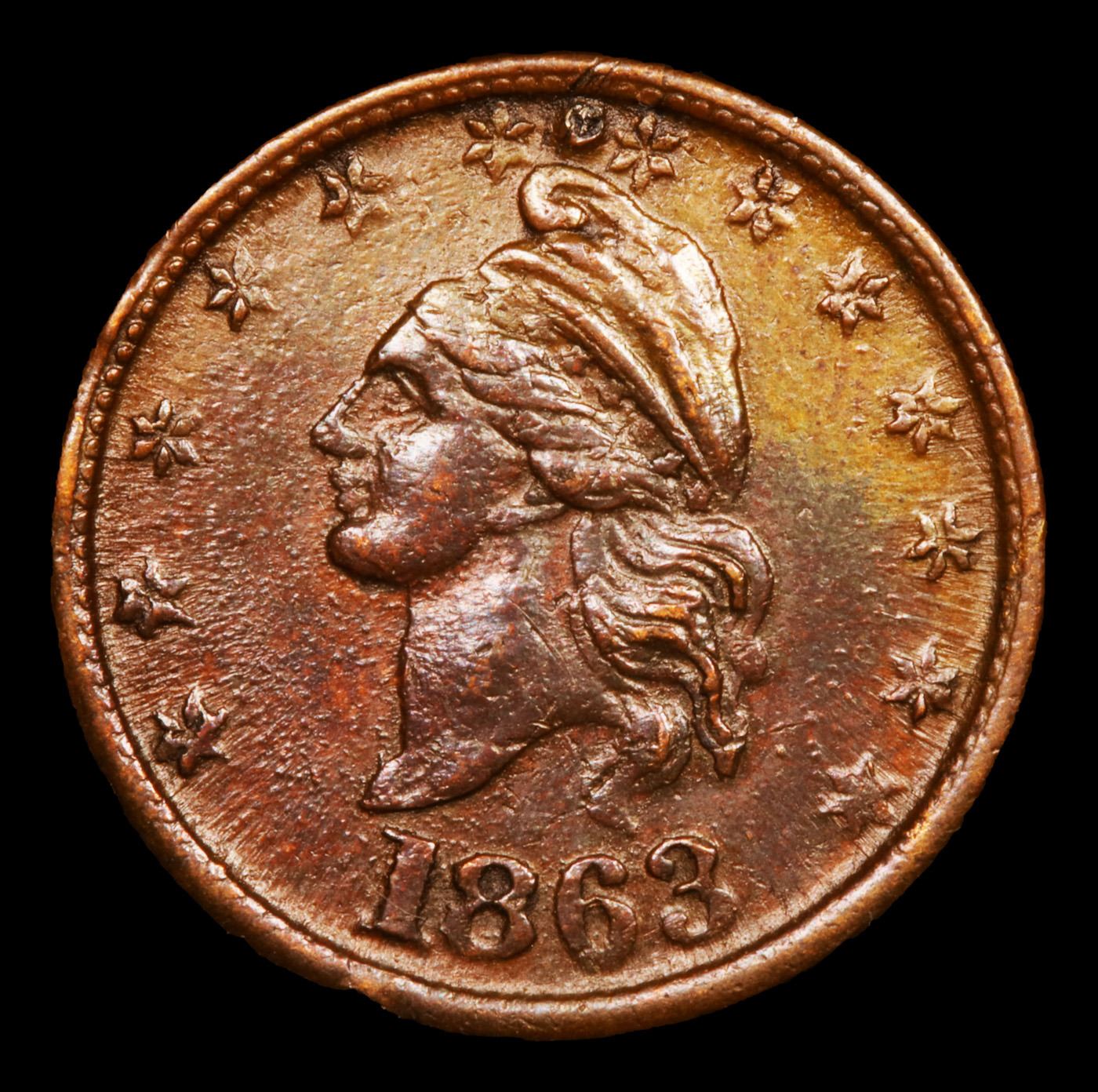 1863 Liberty Cap Civil War Token 1c Grades Choice AU.