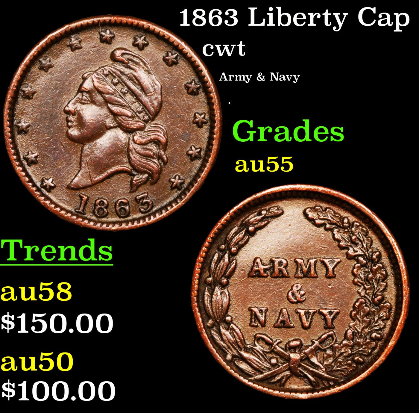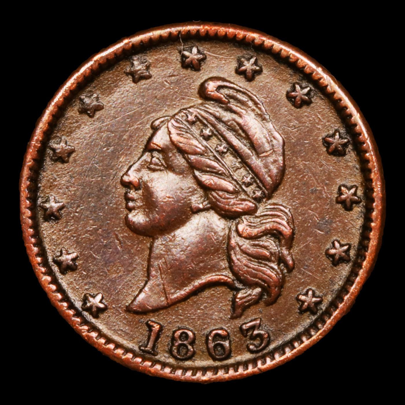 1863 Liberty Cap Civil War Token 1c Grades Choice AU.
