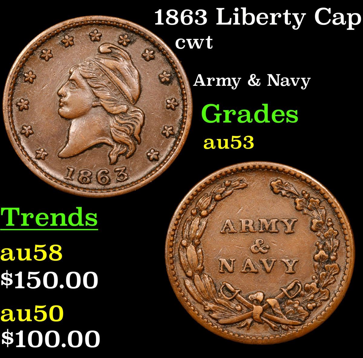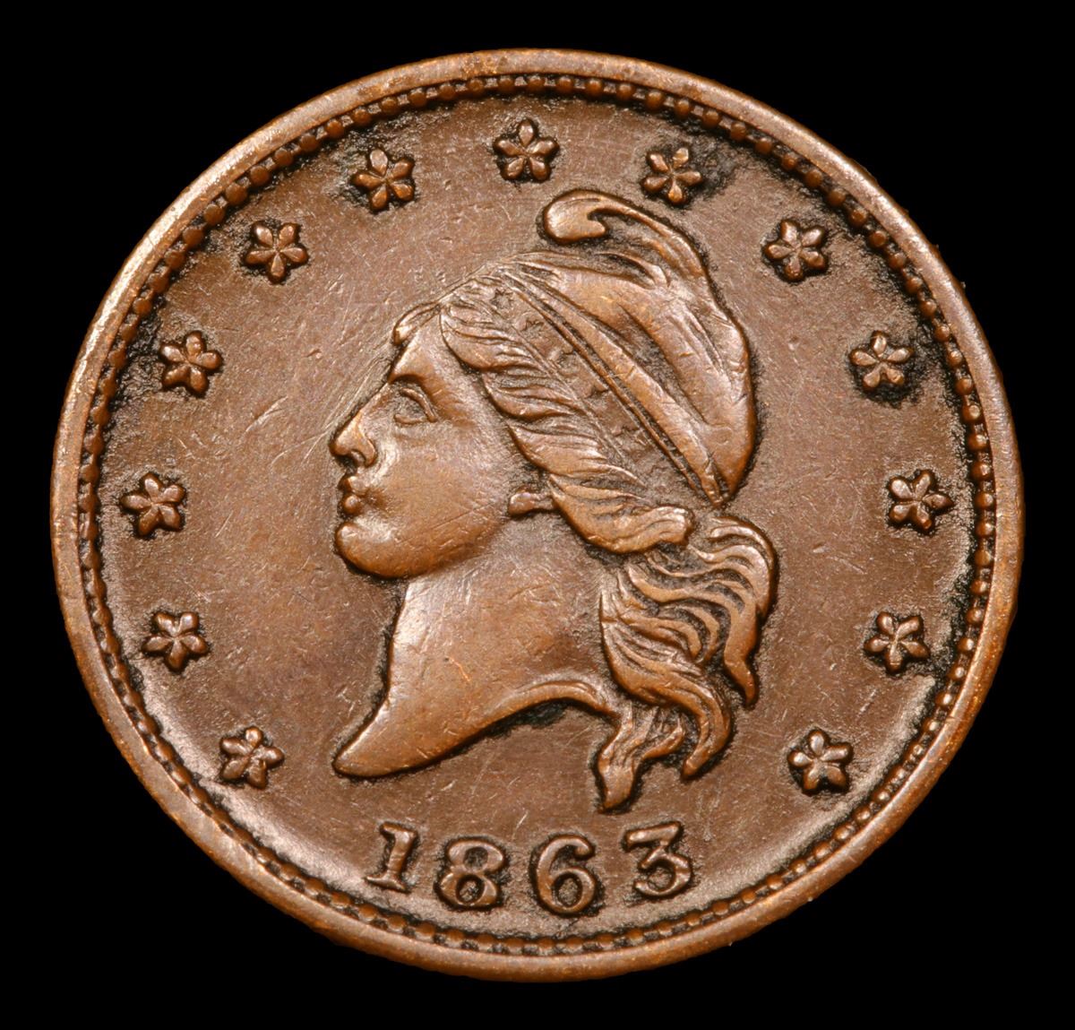 1863 Liberty Cap Civil War Token 1c Grades Select AU.