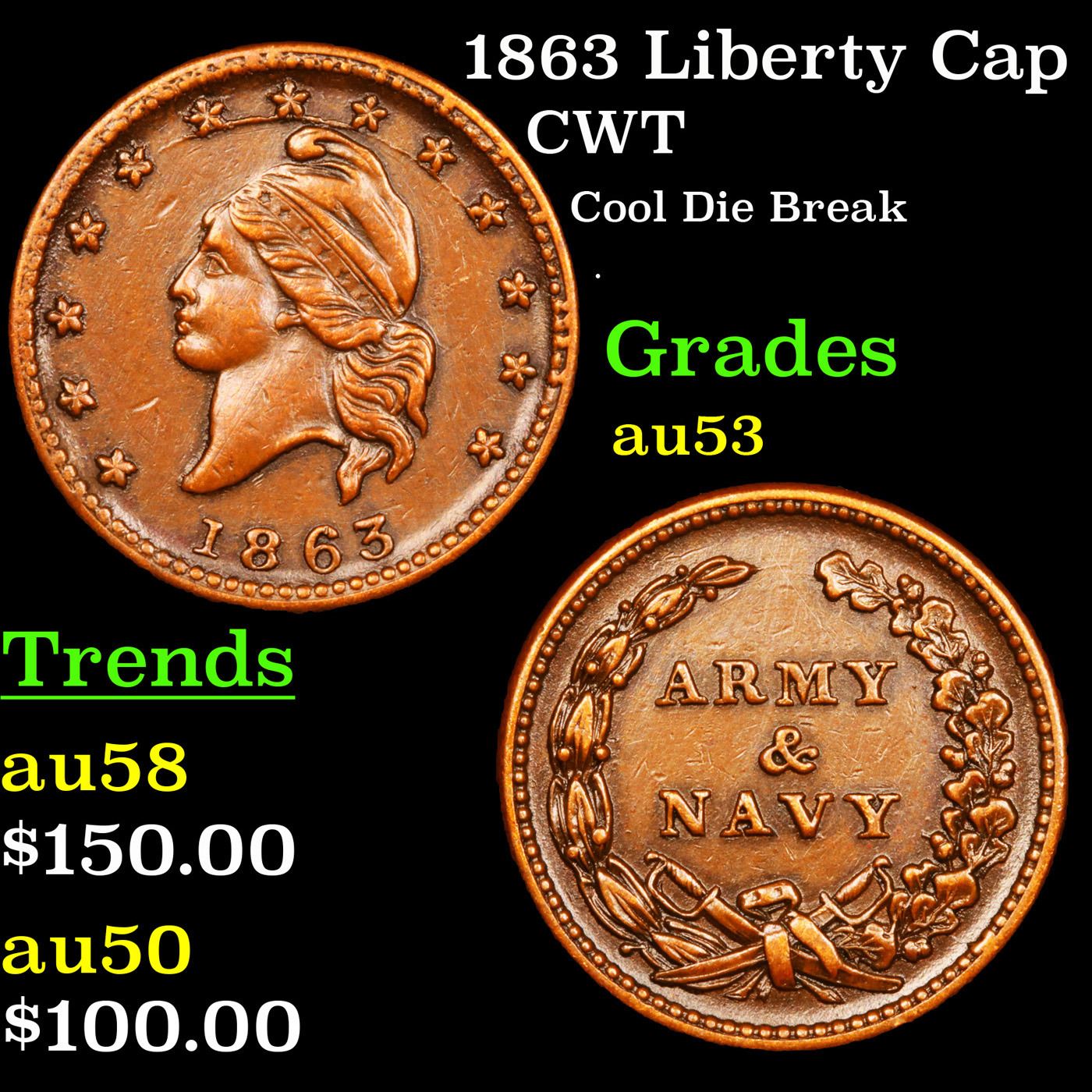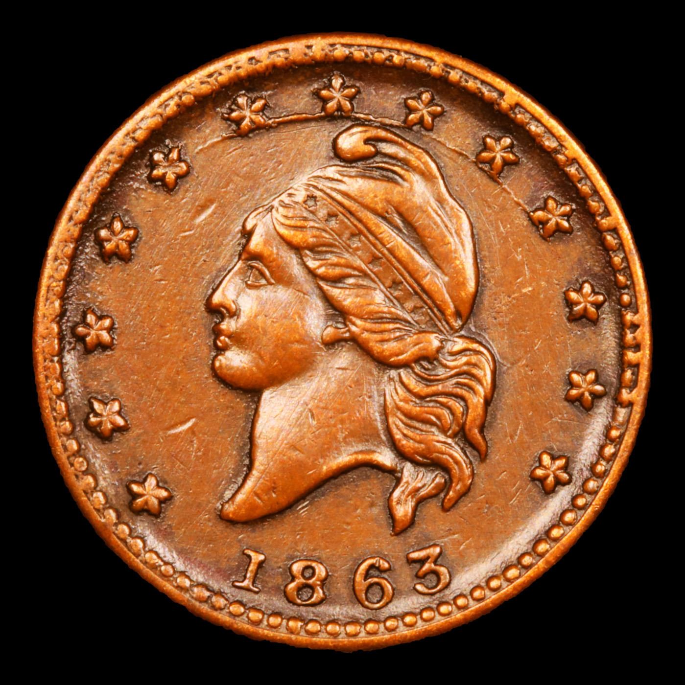 1863 Liberty Cap Civil War Token 1c Grades Select AU.