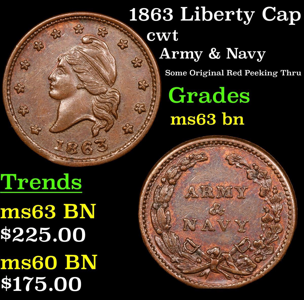 1863 Liberty Cap Civil War Token 1c Grades Select Unc BN.