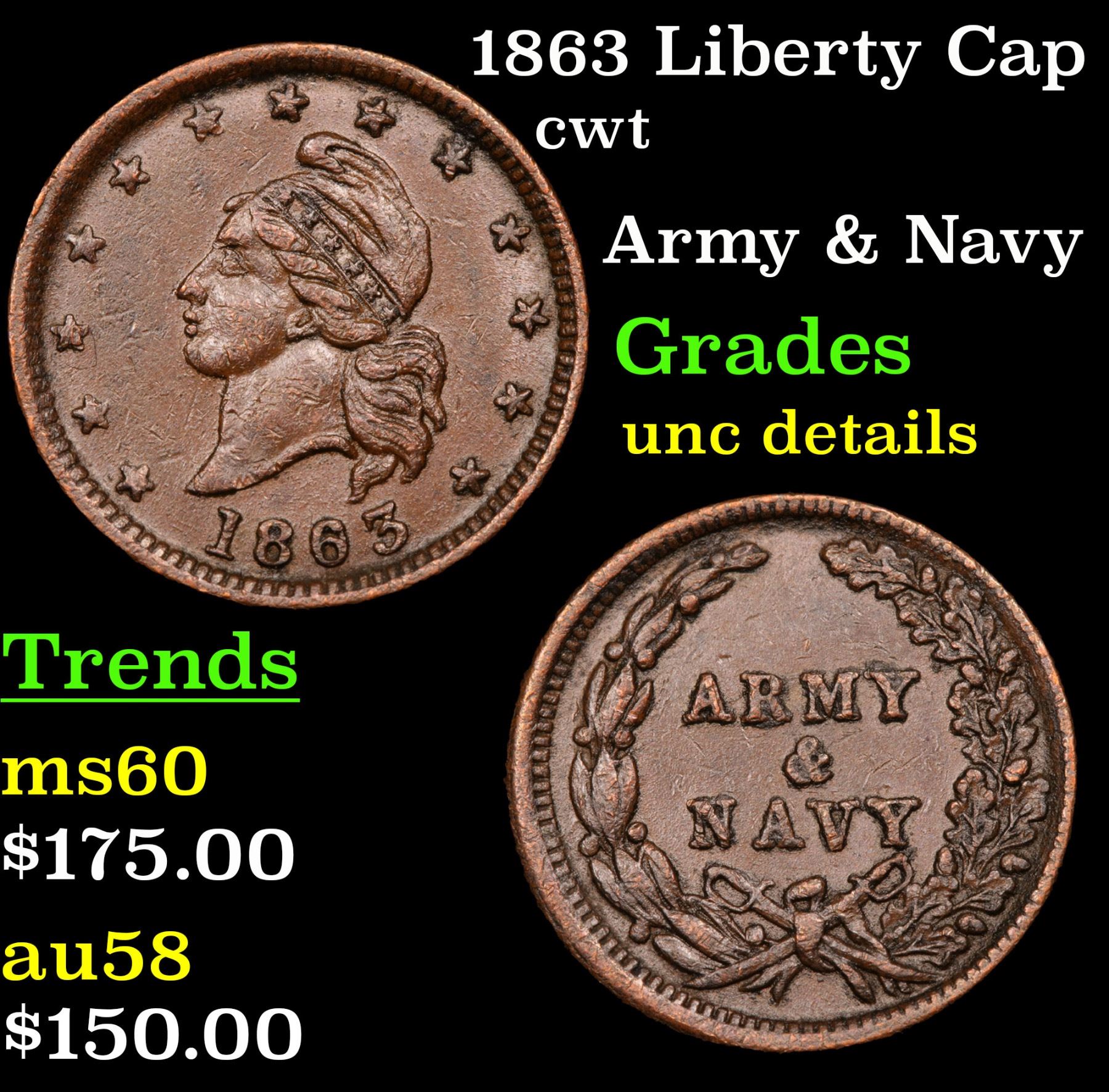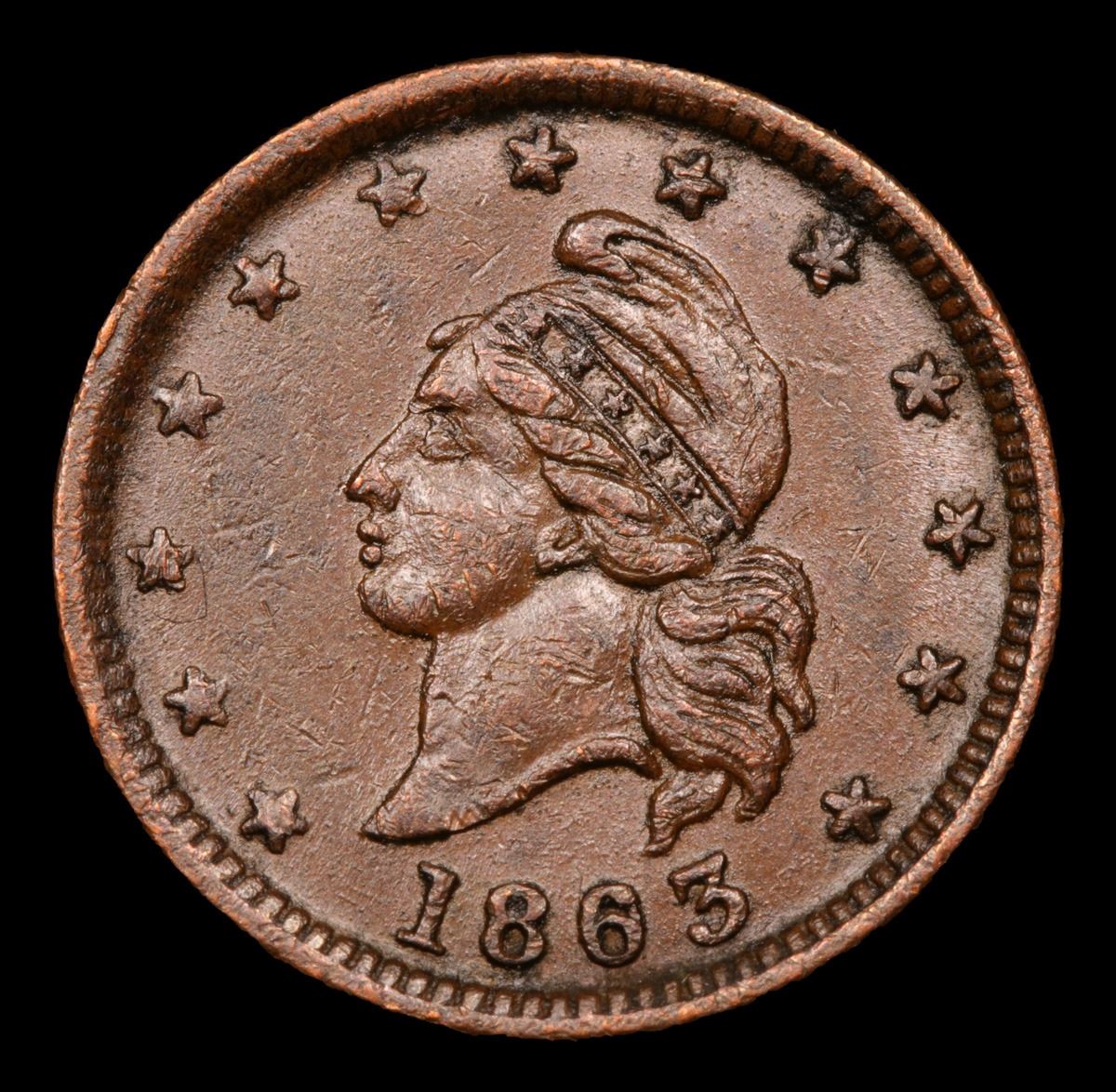 1863 Liberty Cap Civil War Token 1c Grades Unc Details.