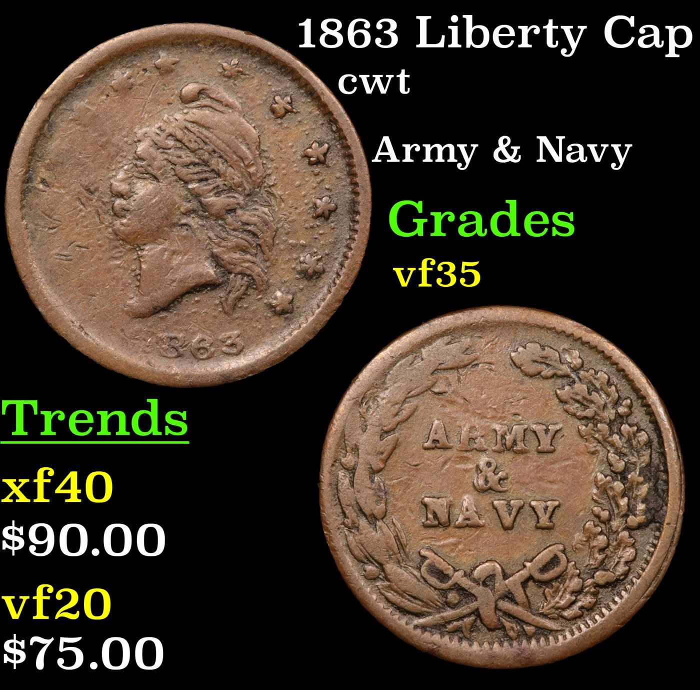 1863 Liberty Cap Civil War Token 1c Grades vf++.