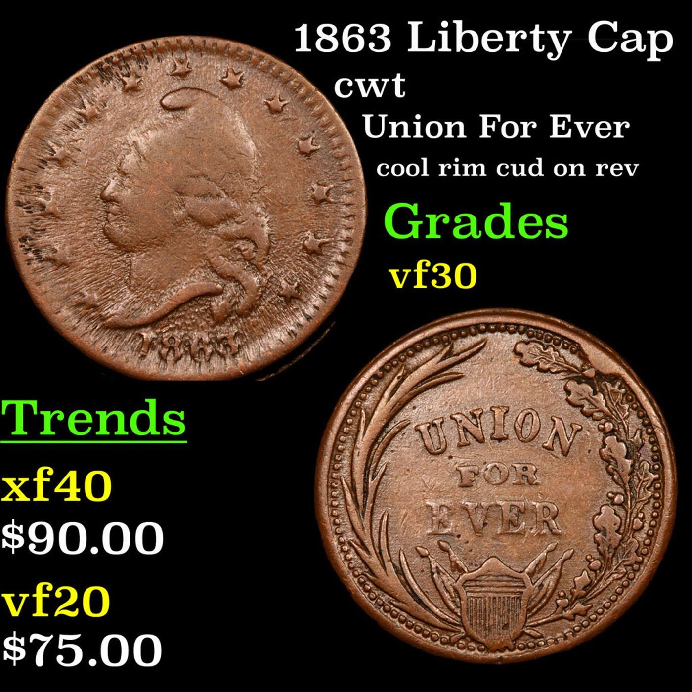 1863 Liberty Cap Civil War Token 1c Grades vf++.