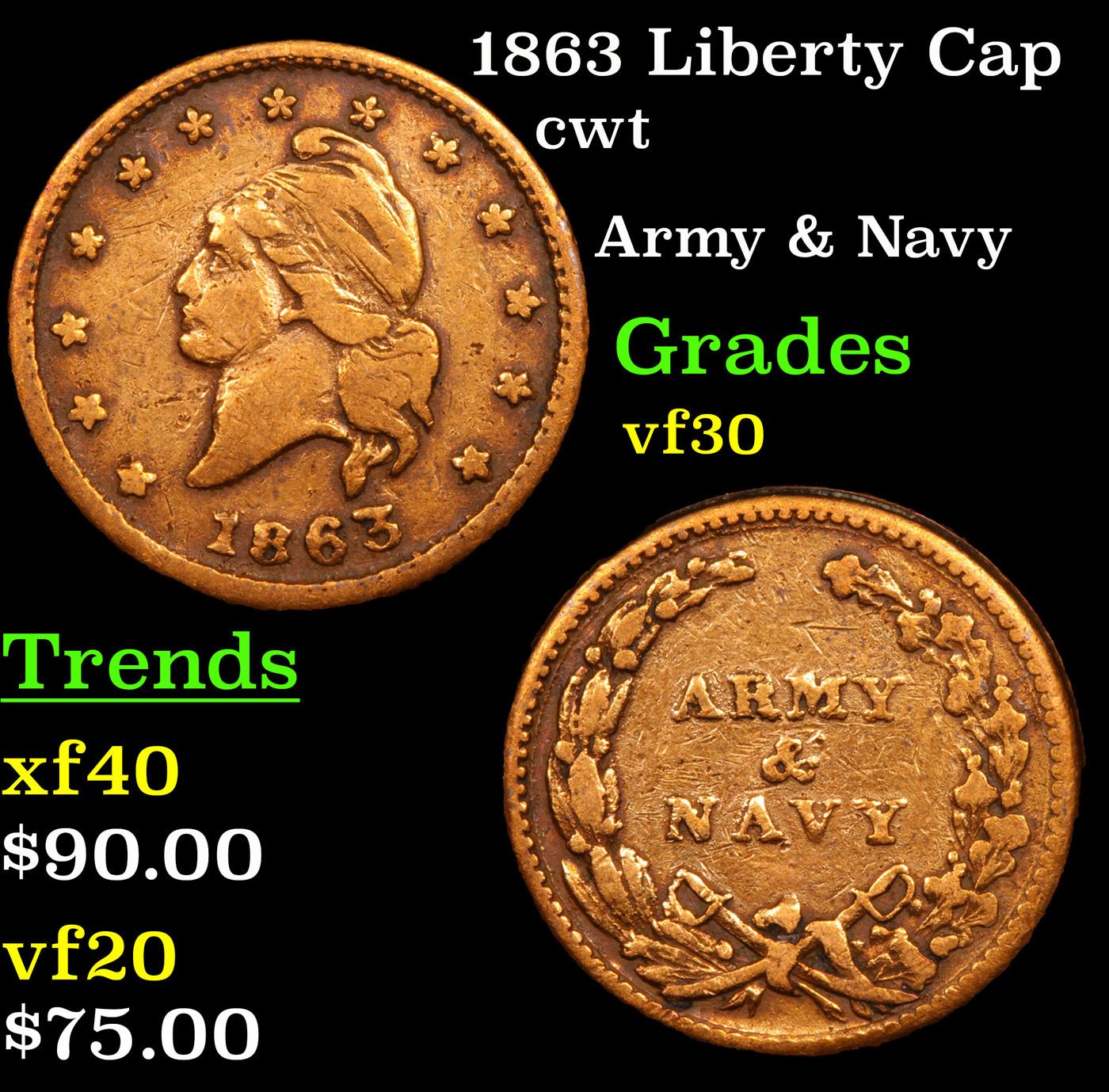 1863 Liberty Cap Civil War Token 1c Grades vf++.