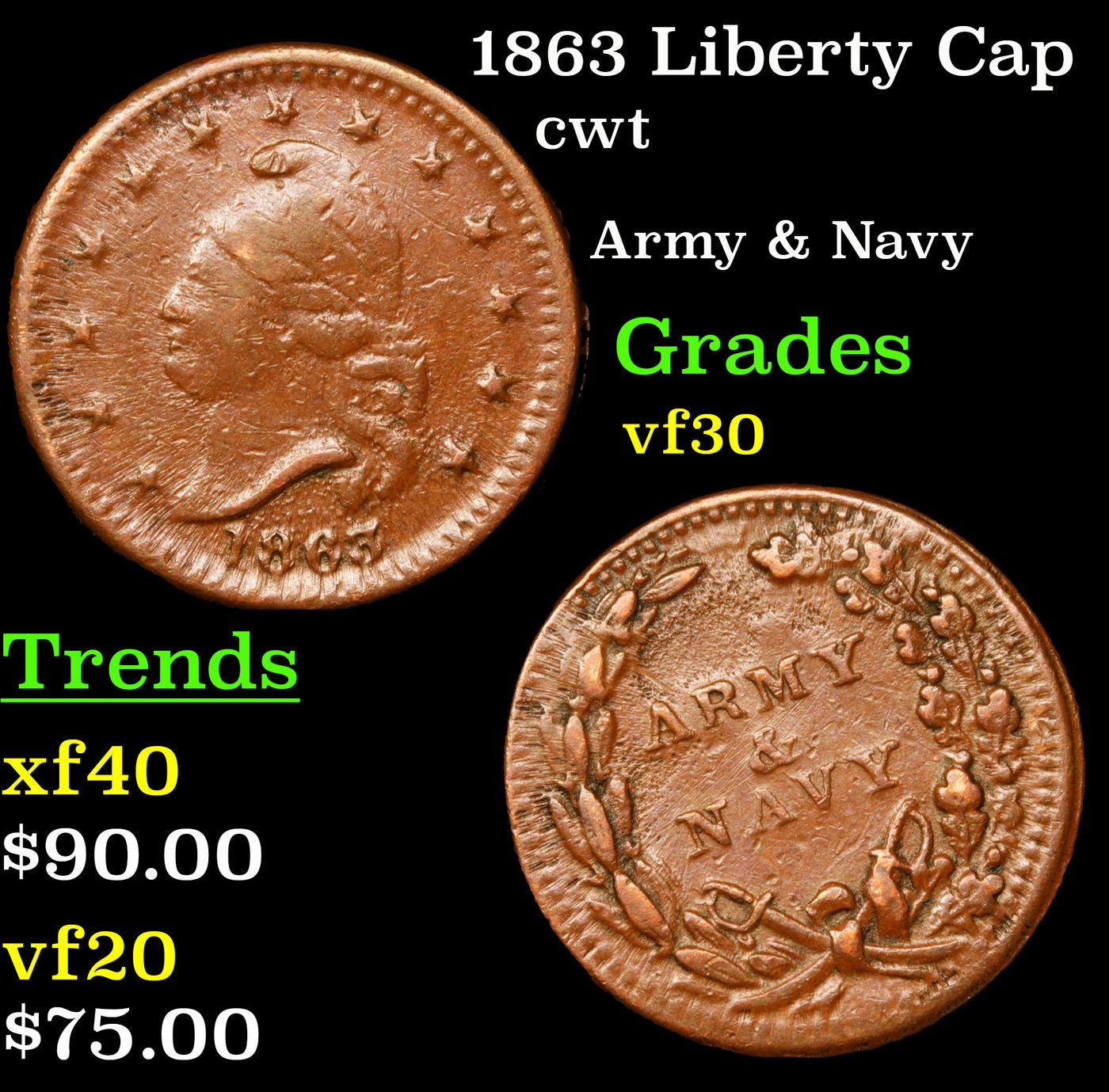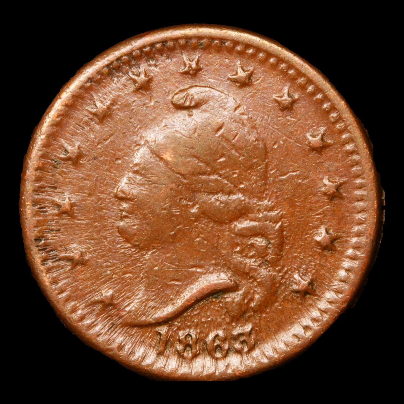 1863 Liberty Cap Civil War Token 1c Grades vf++.