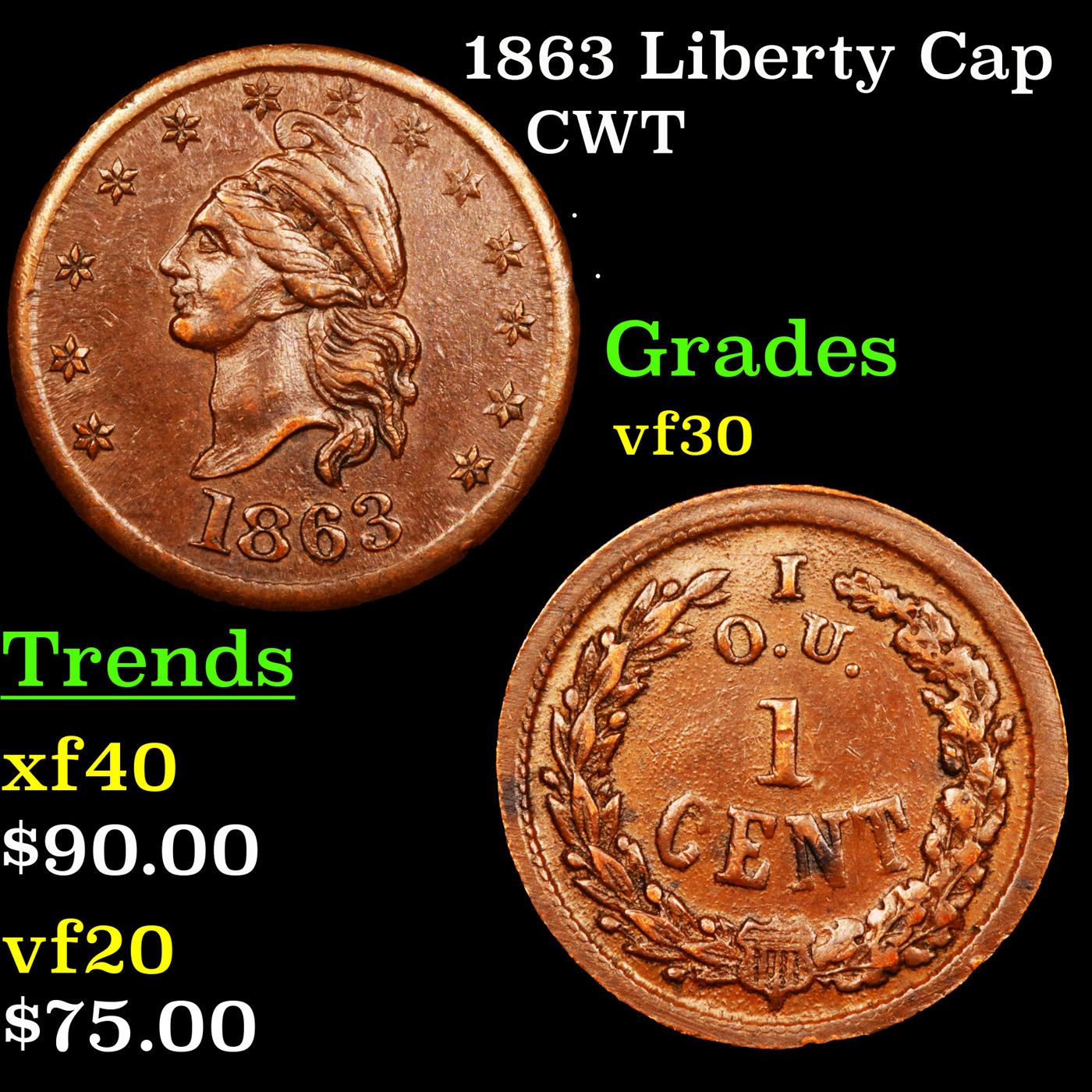 1863 Liberty Cap Civil War Token 1c Grades vf++.