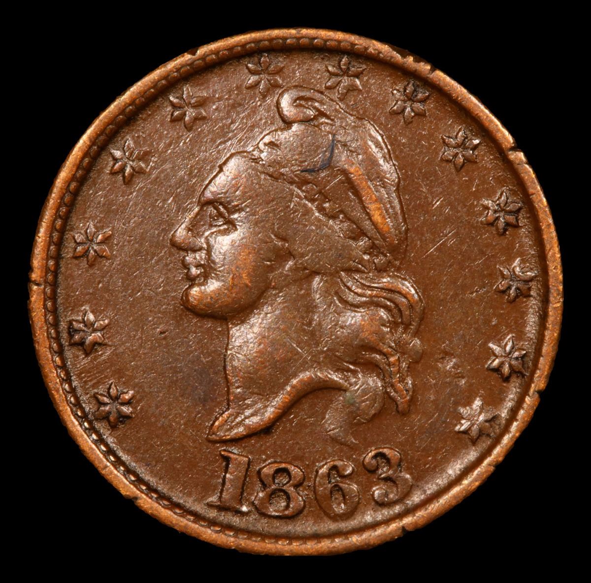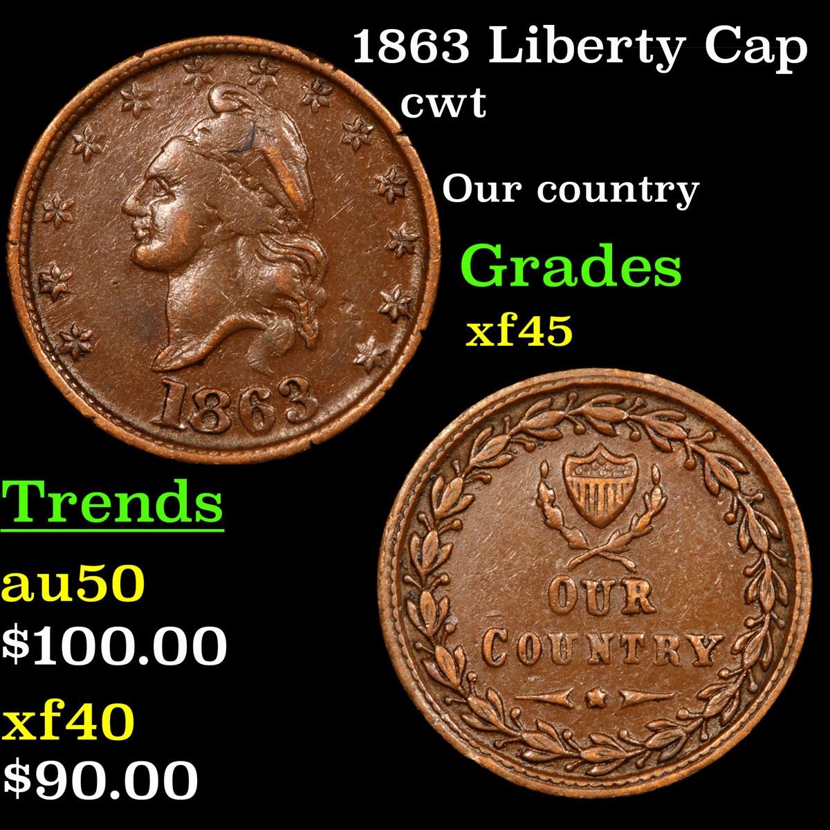 1863 Liberty Cap Civil War Token 1c Grades xf+.