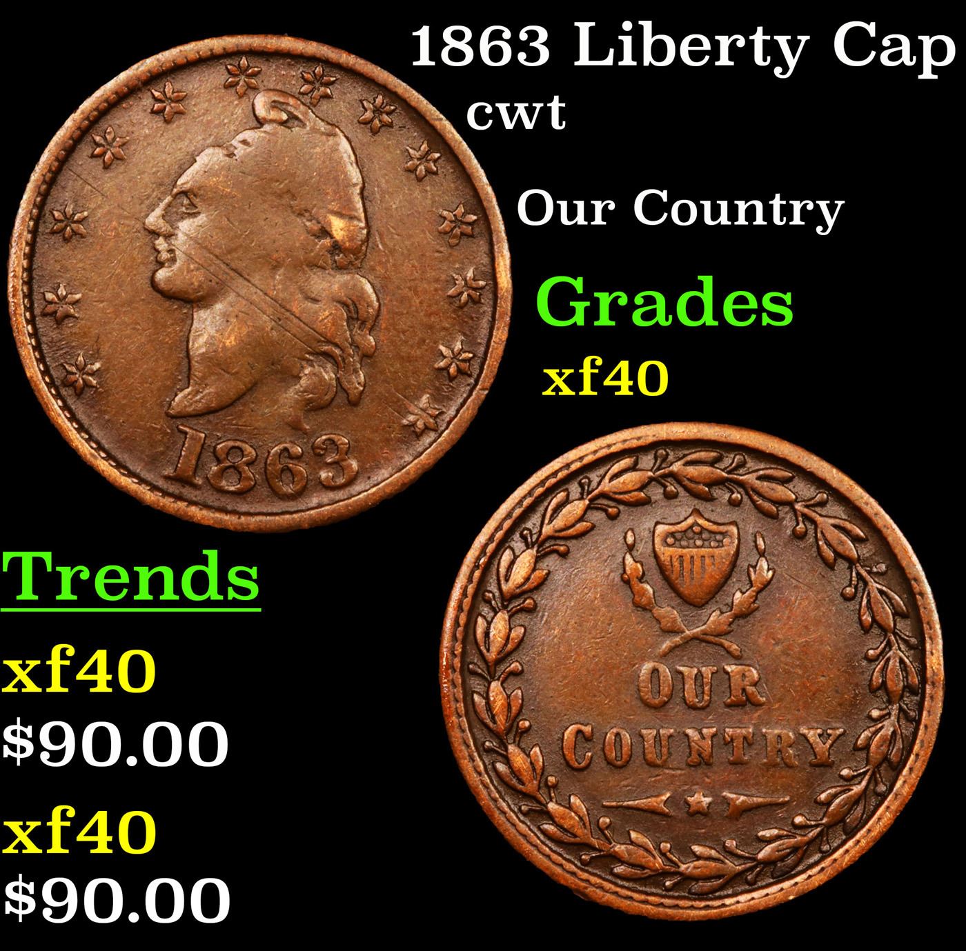 1863 Liberty Cap Civil War Token 1c Grades xf. Obverse: Liberty cap Reverse: Our Country