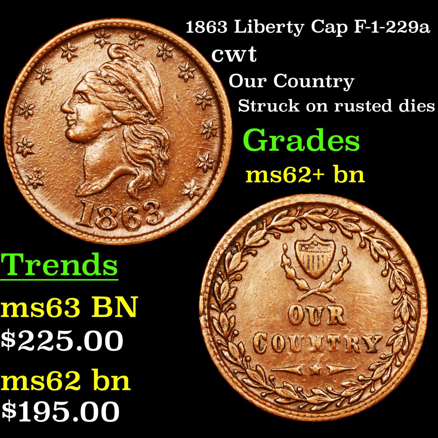 1863 Liberty Cap F-1-229a Civil War Token 1c Grades Select Unc BN. Obverse- Liberty Cap Reverse- Our Country