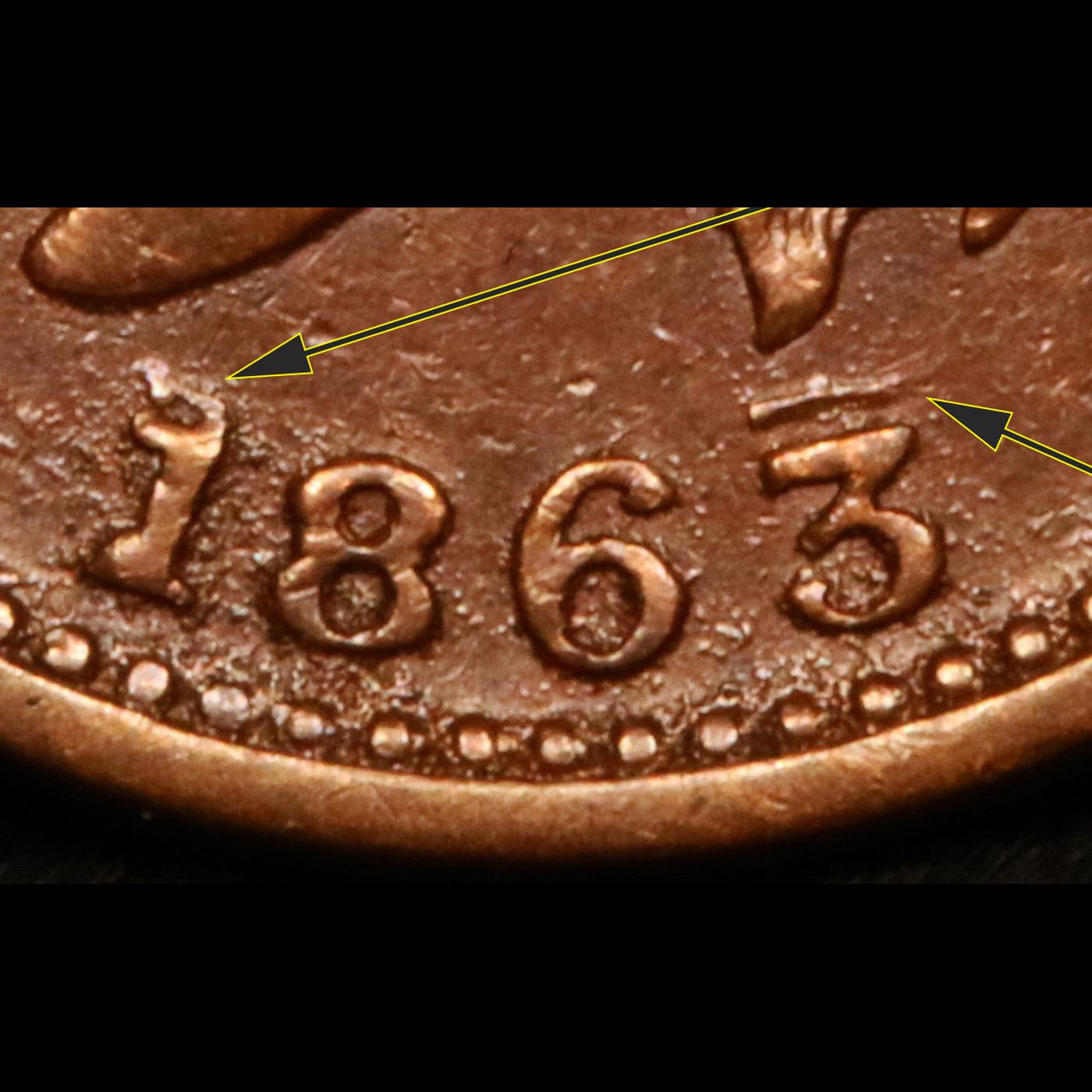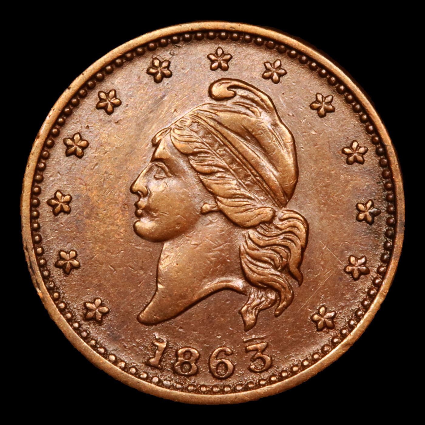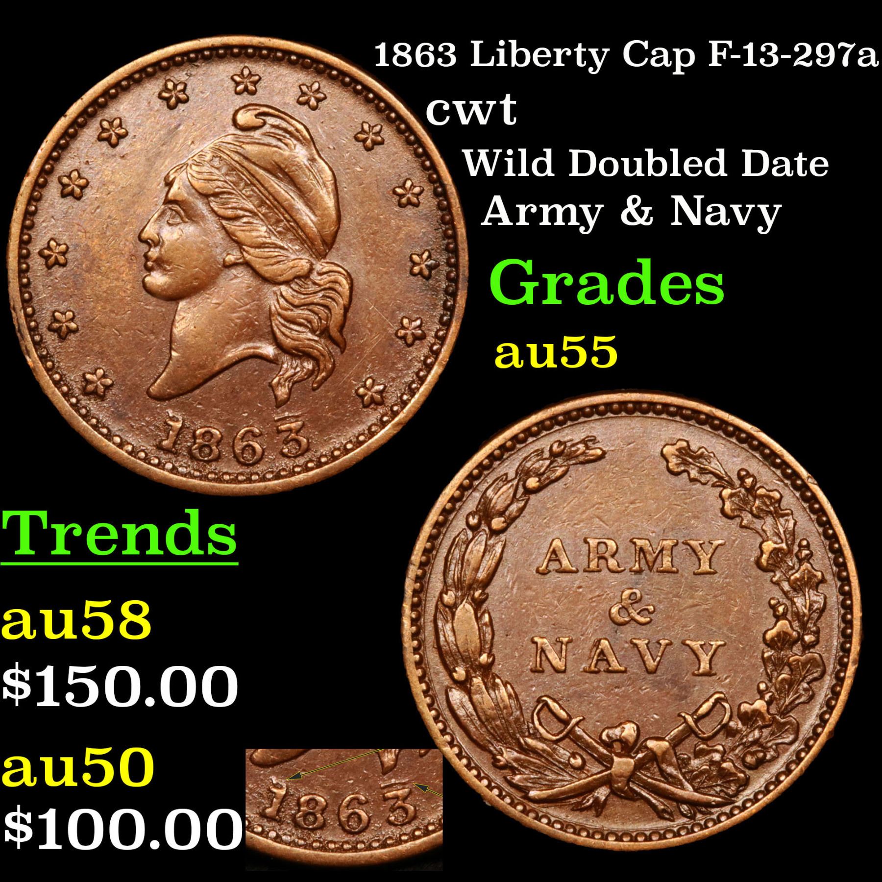 1863 Liberty Cap F-13-297a Civil War Token 1c Grades Choice AU.