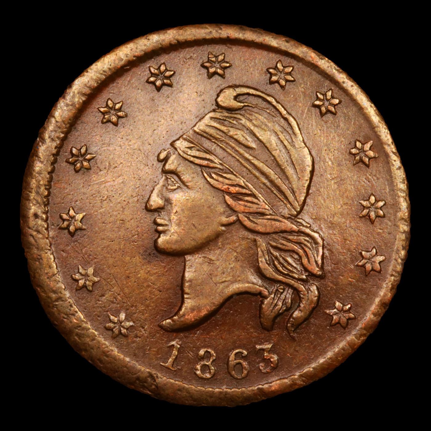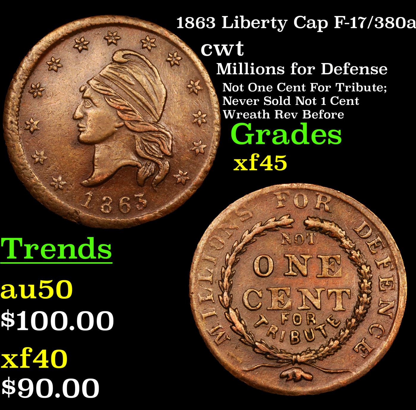 1863 Liberty Cap F-17/380a Civil War Token 1c Grades xf+. Obverse: Liberty Cap Reverse: Millions For Defense, Not Fine Cent For Tribute