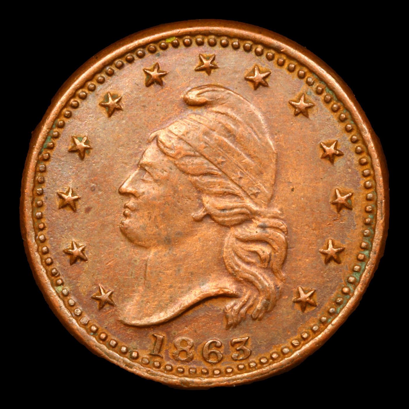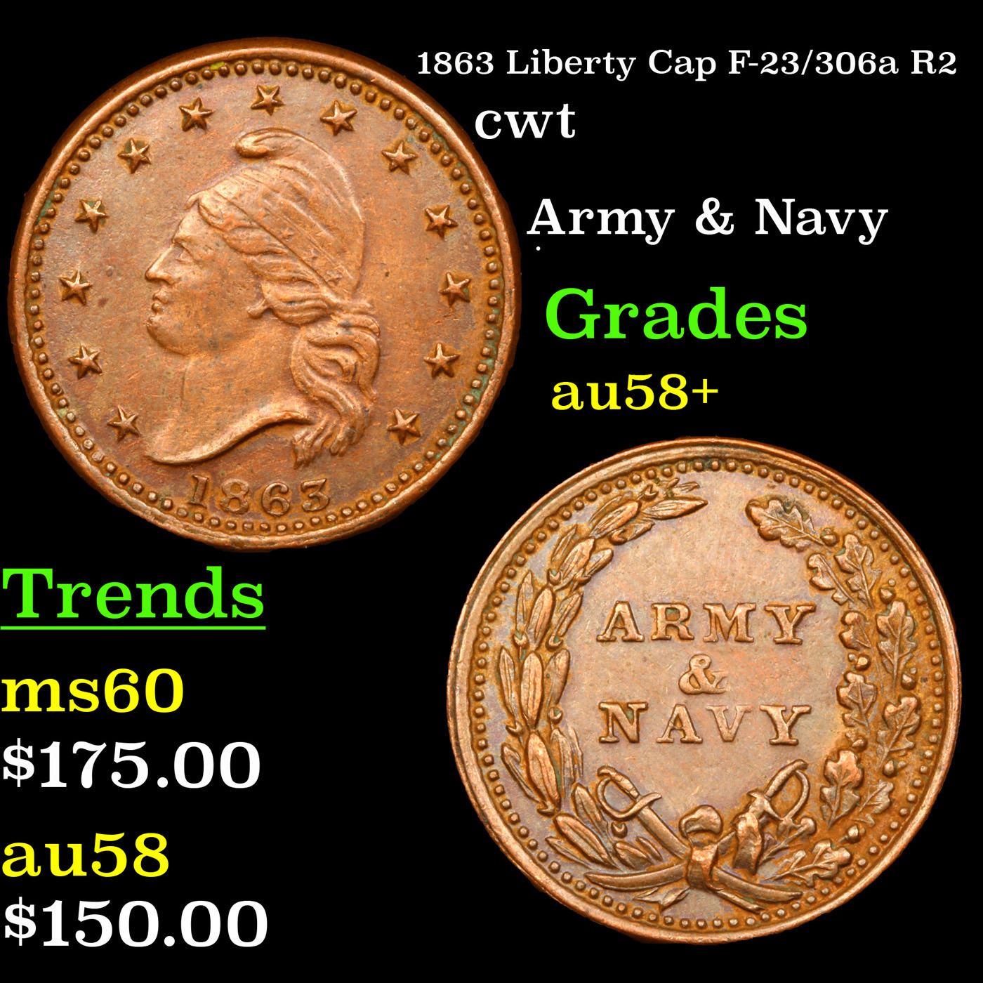 1863 Liberty Cap F-23/306a R2 Civil War Token 1c Grades Choice AU/BU Slider+.