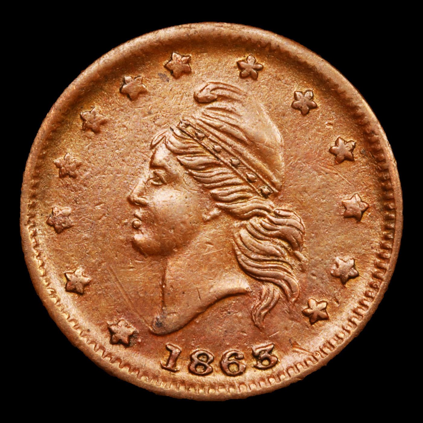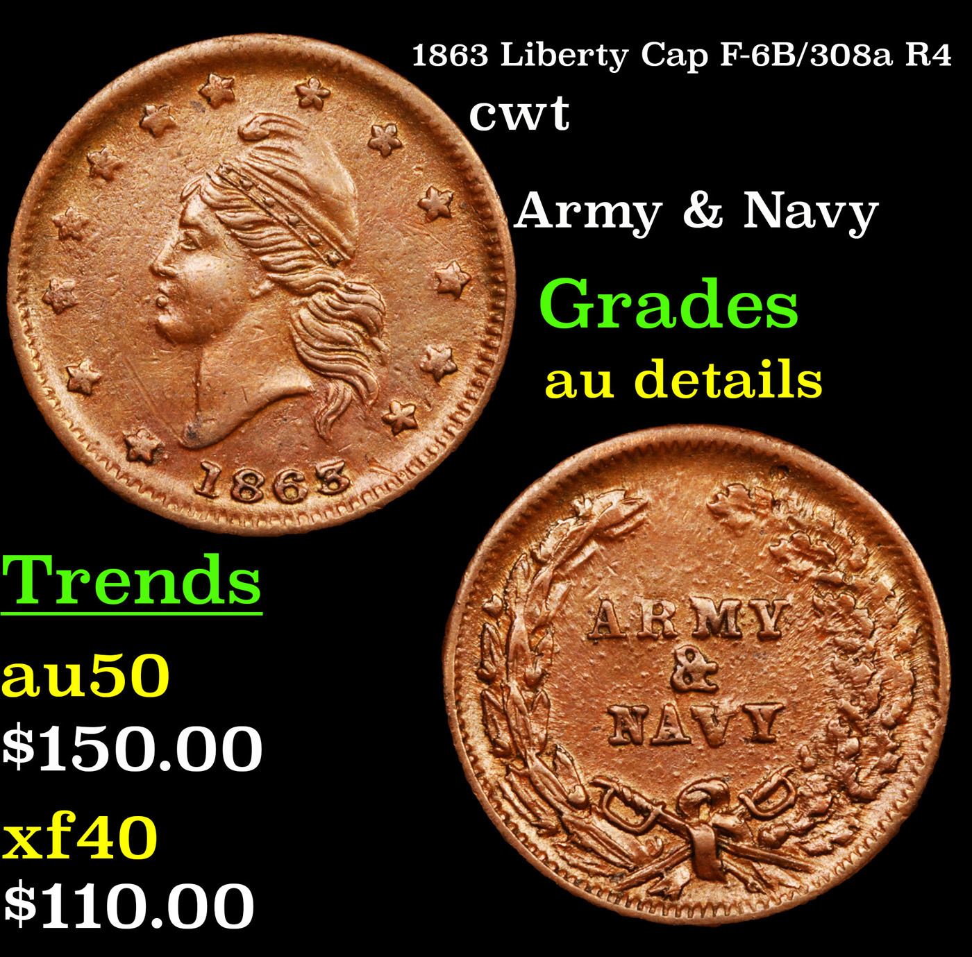 1863 Liberty Cap F-6B/308a R4 Civil War Token 1c Grades AU Details. Obverse: Liberty cap Reverse: Army & Navy