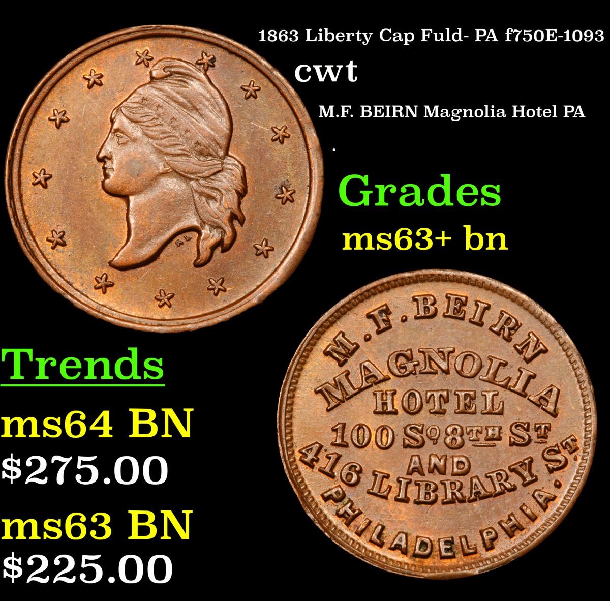 1863 Liberty Cap Fuld- PA f750E-1093 Civil War Token 1c Grades Select+ Unc BN.