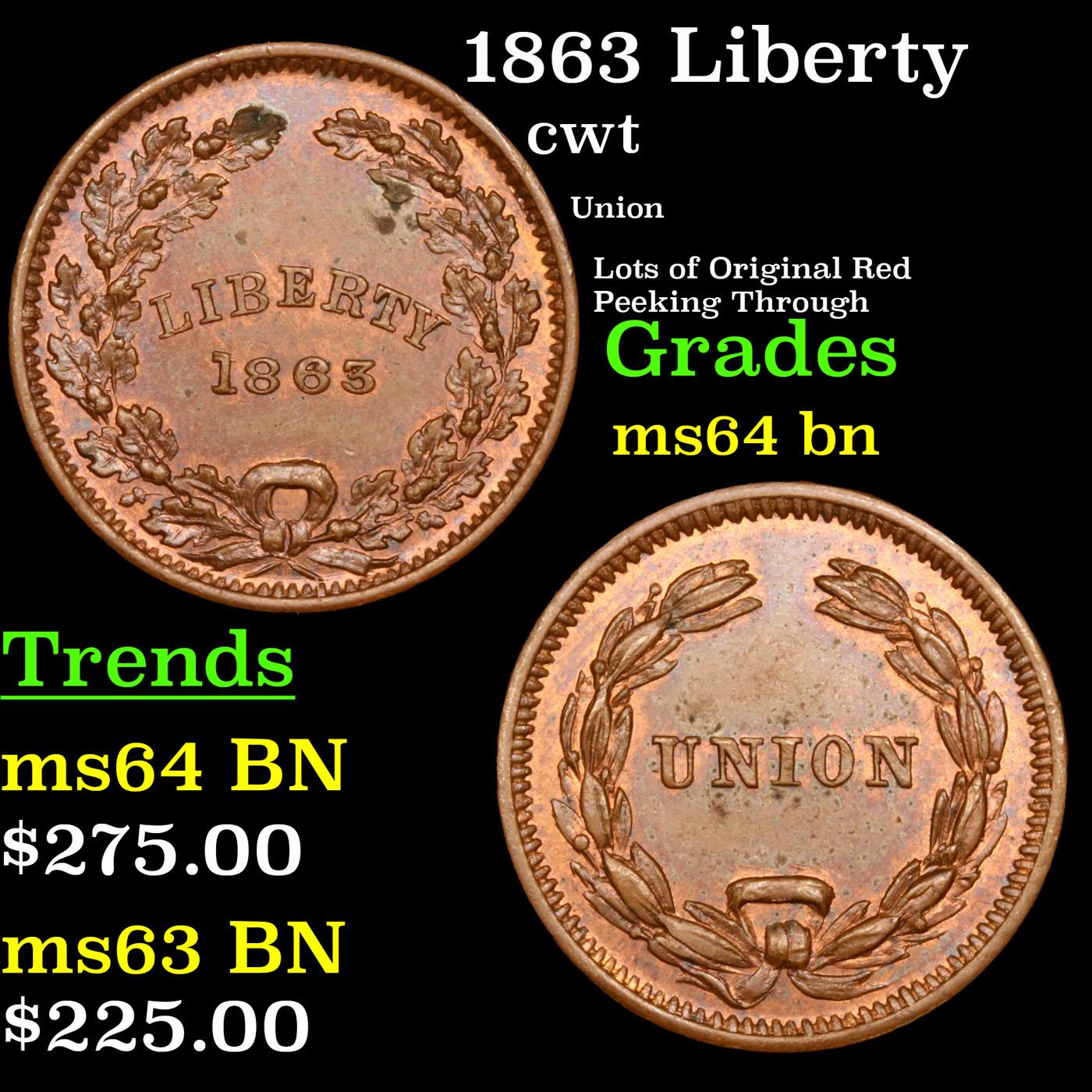 1863 Liberty Civil War Token 1c Grades Choice Unc BN.