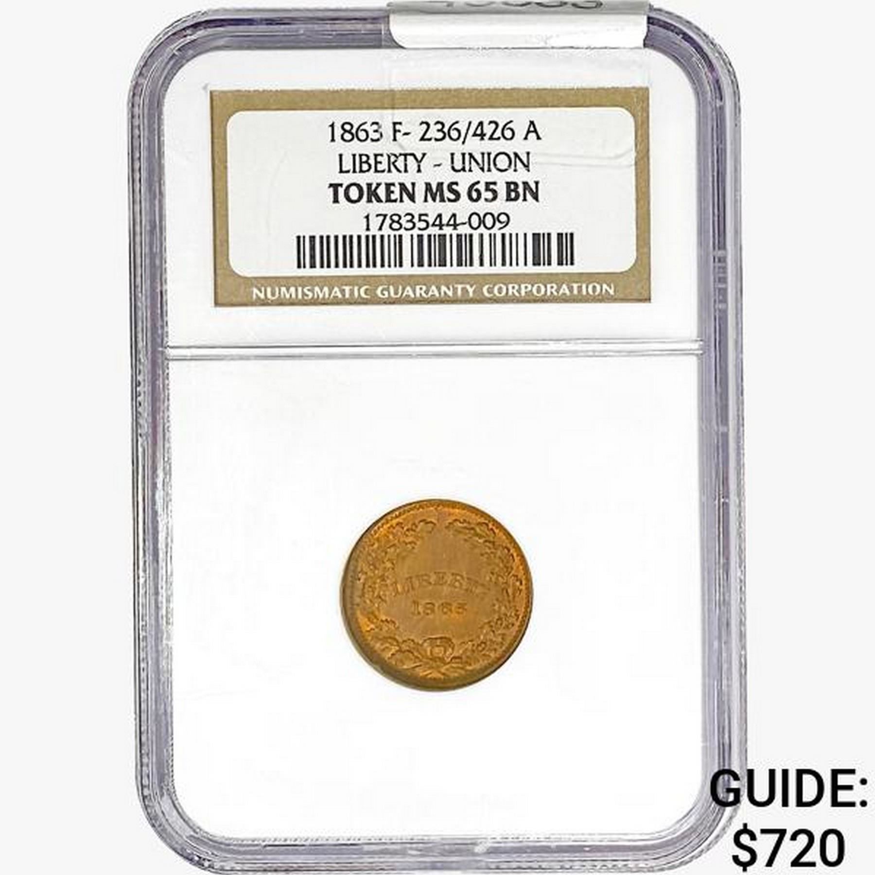 1863 Liberty Union Token NGC MS65 BN F-236/426a