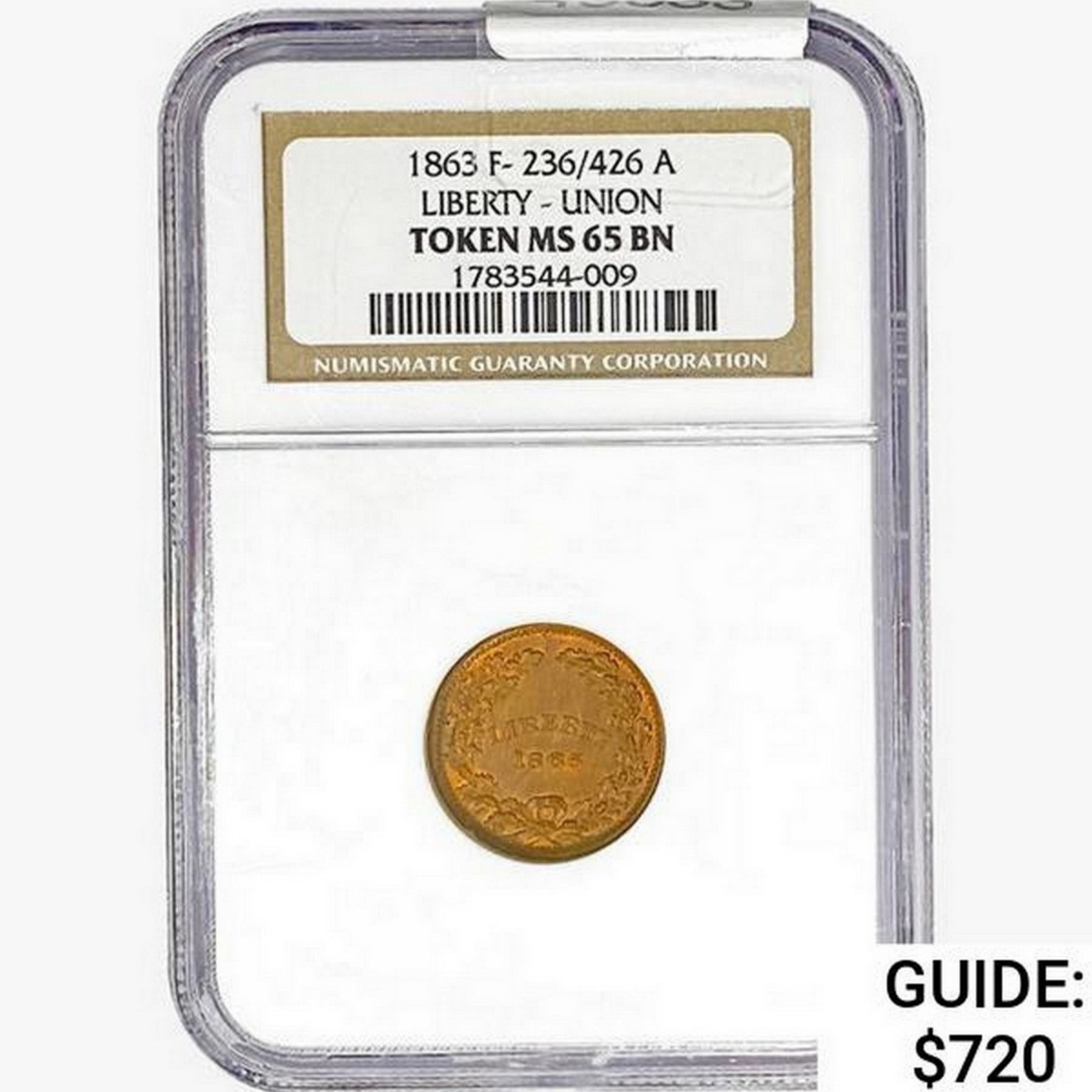 1863 Liberty Union Token NGC MS65 BN F-236/426a