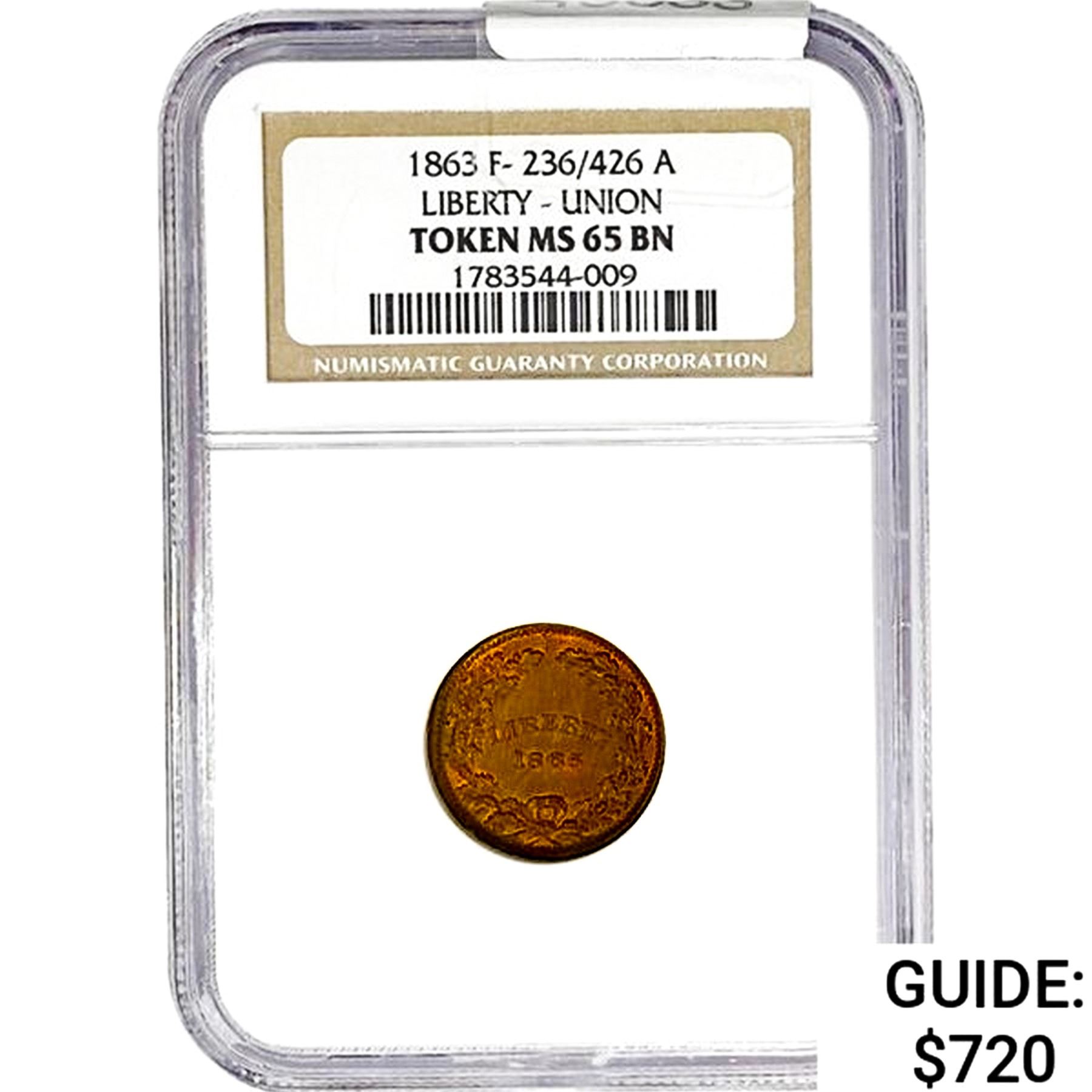 1863 Liberty Union Token NGC MS65 BN F-236/426a