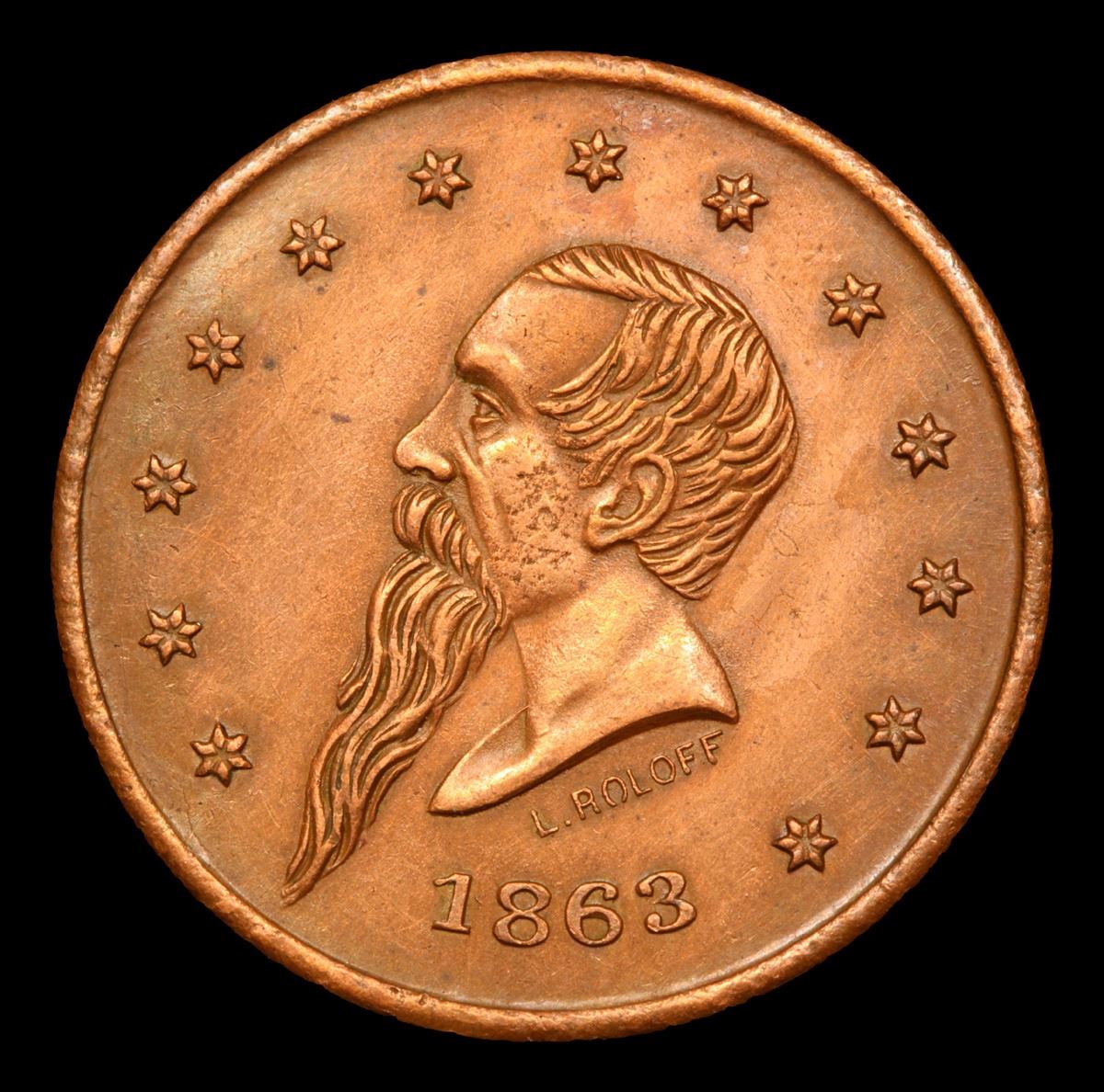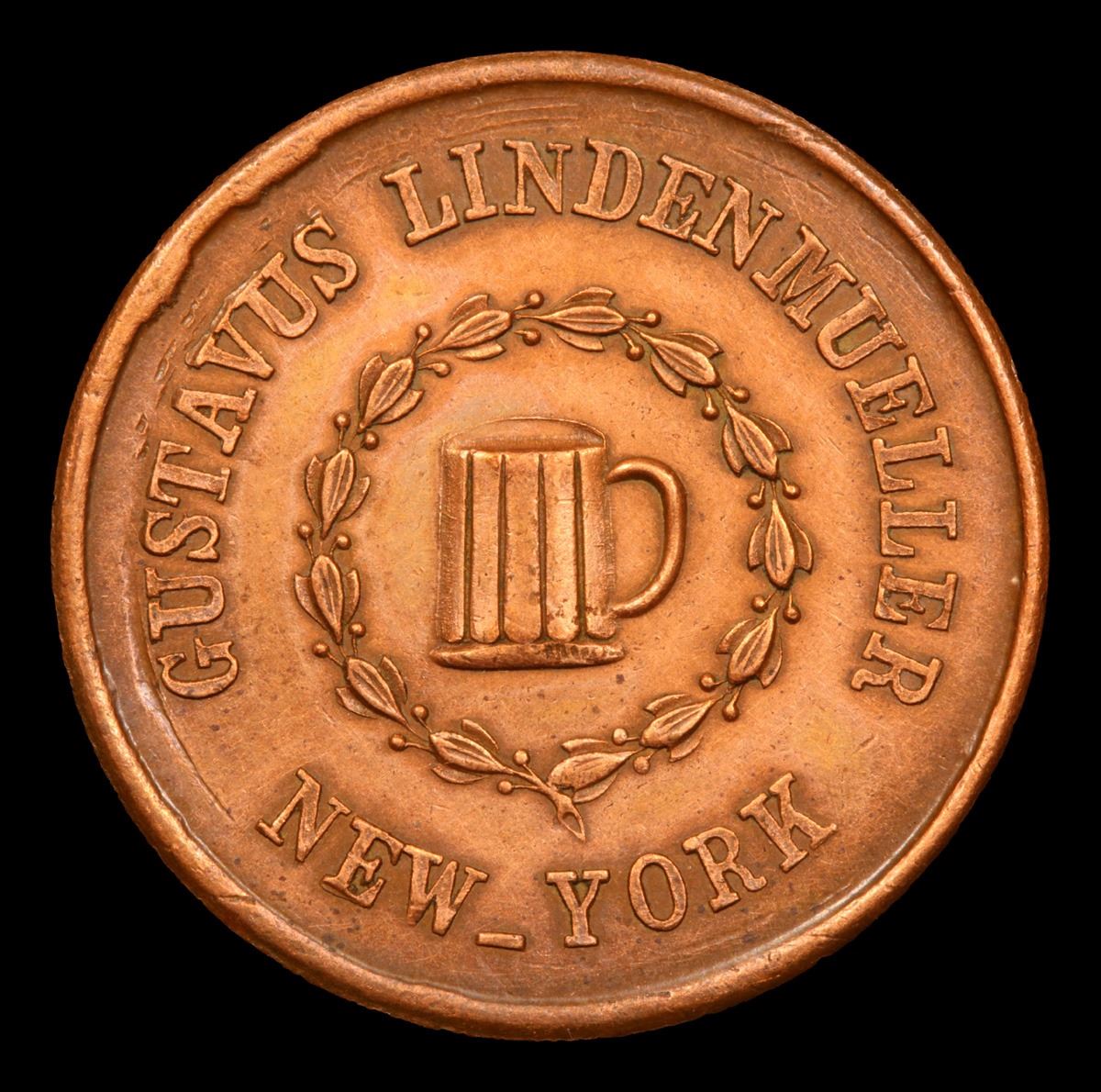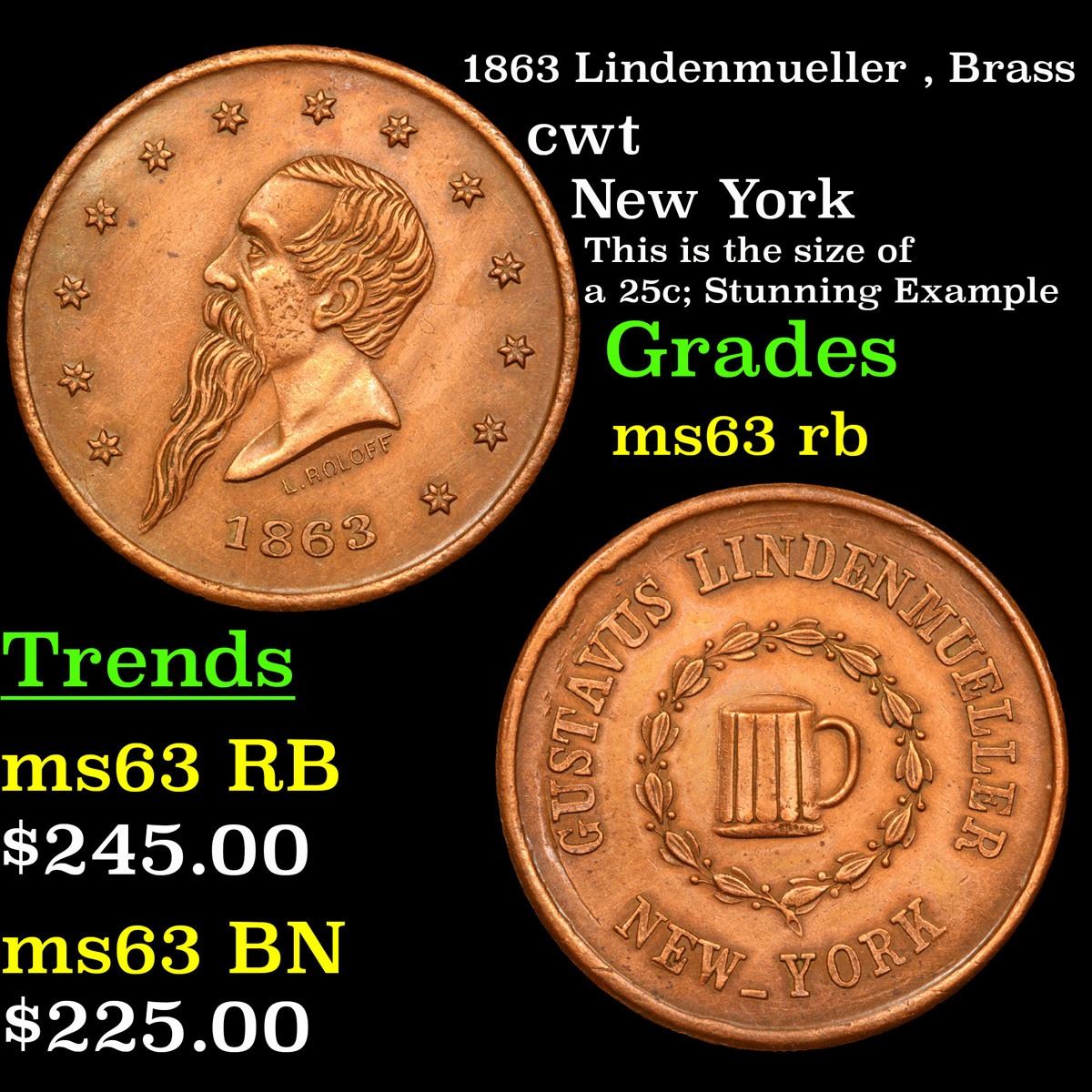 1863 Lindenmueller , Brass Civil War Token 1c Grades Select Unc RB.