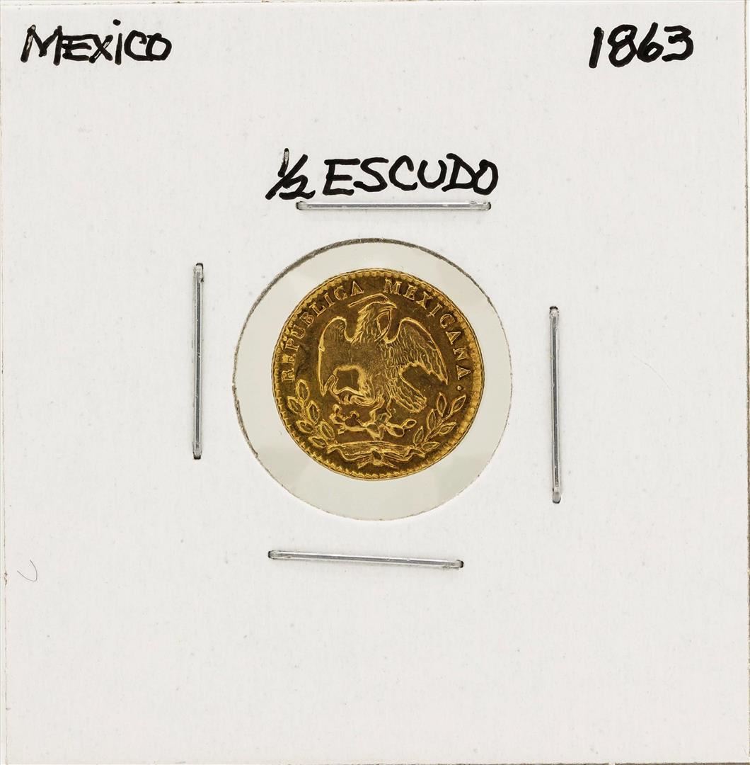 One 1863 Mexico 1/2 Escudo Gold Coin.