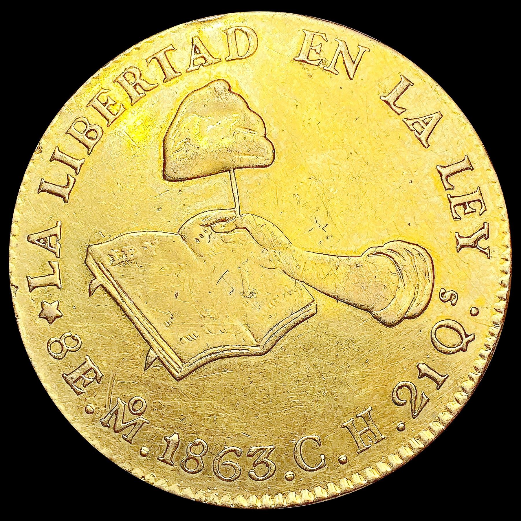 1863 Mexico .7615oz Gold 8 Escudos NICELY CIRCULAT