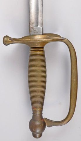 & Silver Trenton, N.J., DFM proofed, no scabbard. Brass hilted with handle showing a gray even smooth patina with a few minor chips. Desirable maker.