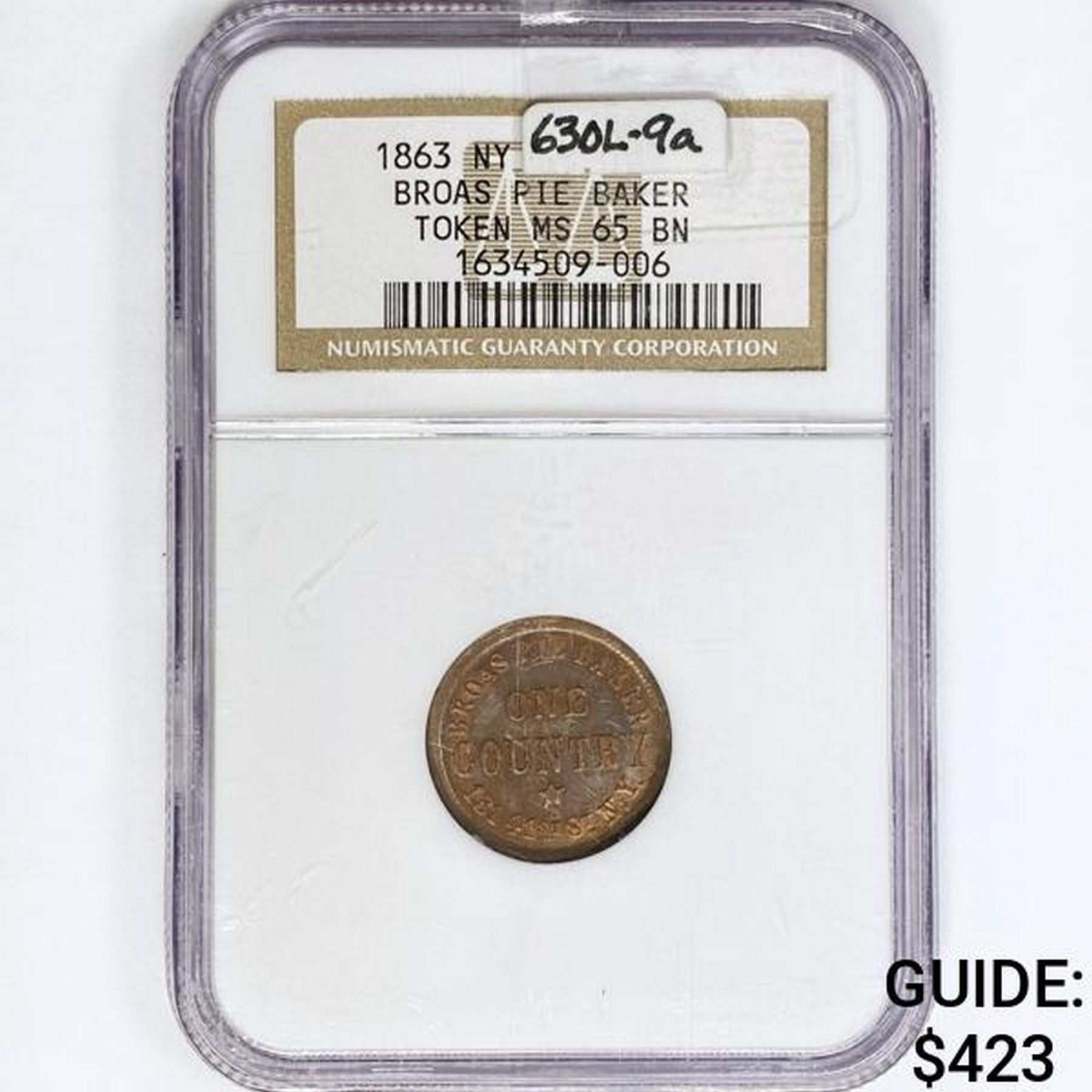1863 NY Civil War Shop Token NGC MS65 BN 630L-9a