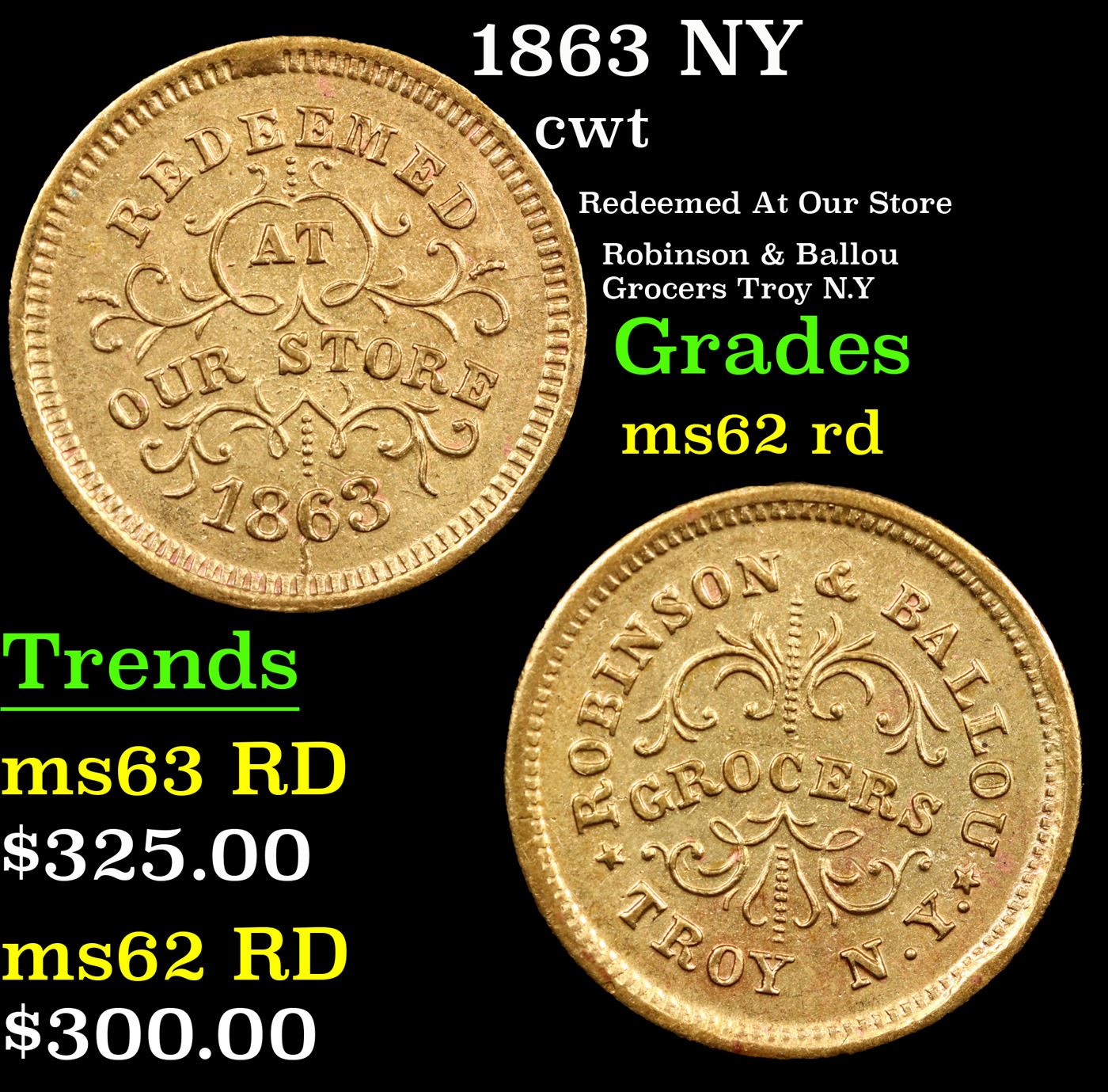 1863 NY Civil War Token 1c Grades Select Unc RD.