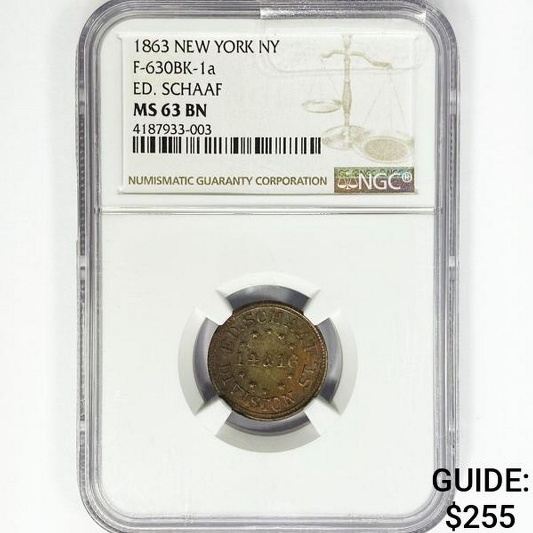 1863 NY F-630BK-1a NGC MS63 BN, Schaaf