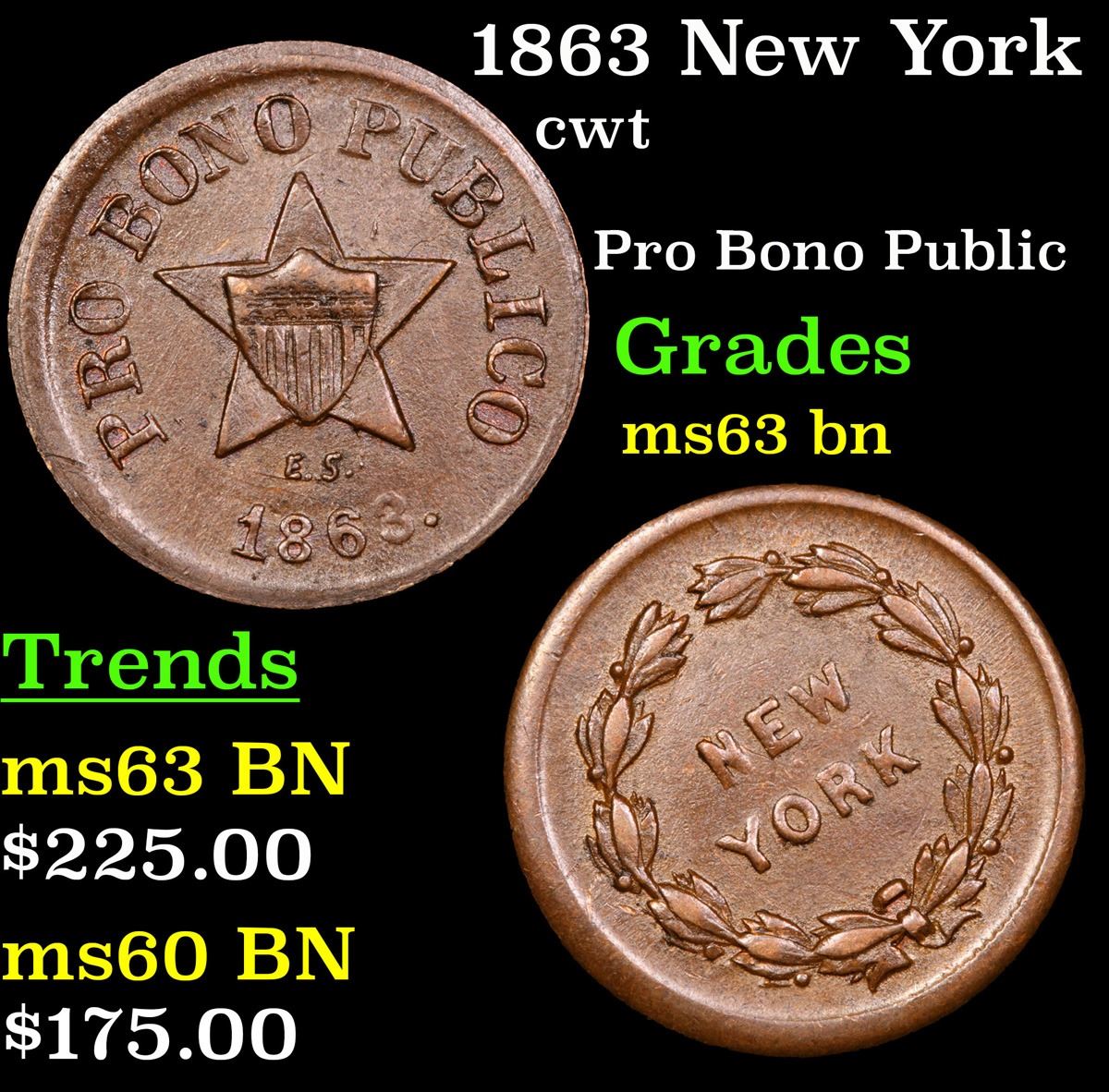1863 New York Pro Bono Public . Civil War Token 1c Grades Select Unc BN.