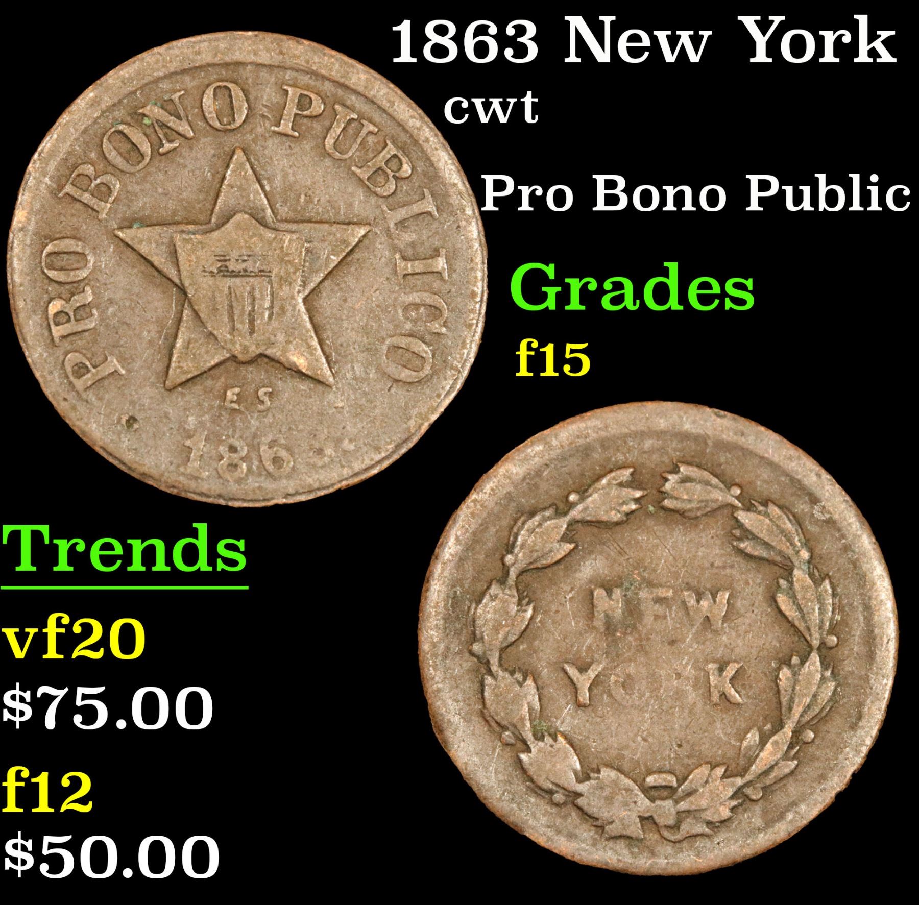 1863 New York Civil War Token 1c Grades f+. Pro Bono Public