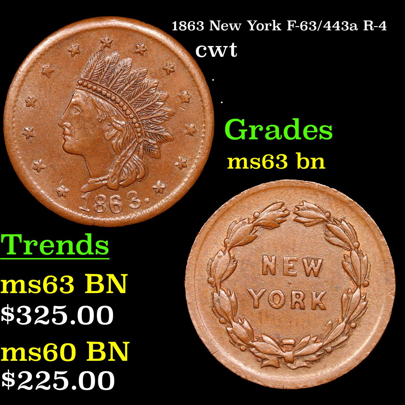1863 New York F-63/443a R-4 Civil War Token 1c Grades Select Unc BN.