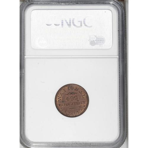 1863 New York F-630AU-1a B Maloney NYC, MS63 RB NGC. Si