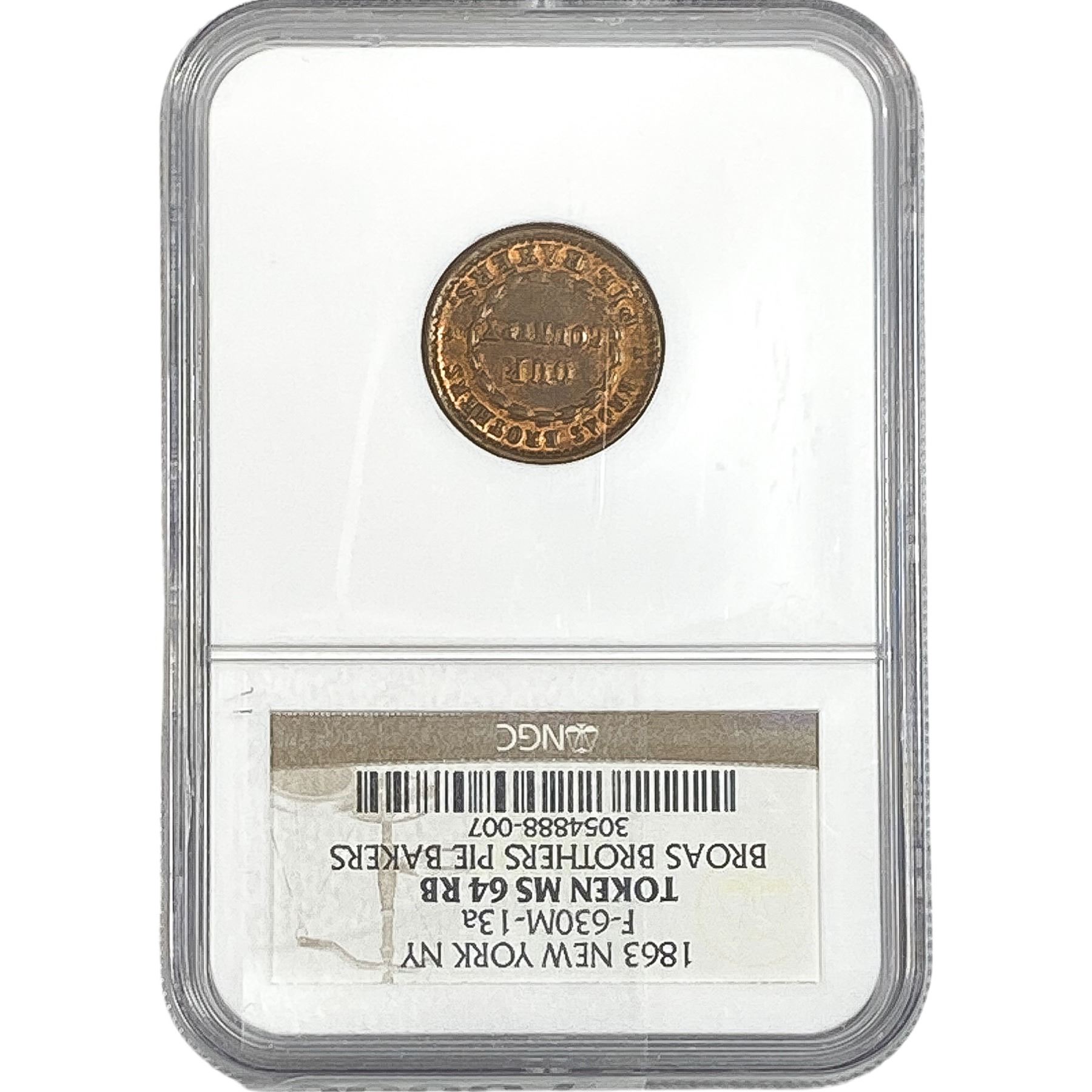 1863 New York F-630M-13a Broas Brothers Pie Bakers NGC MS64 RB
