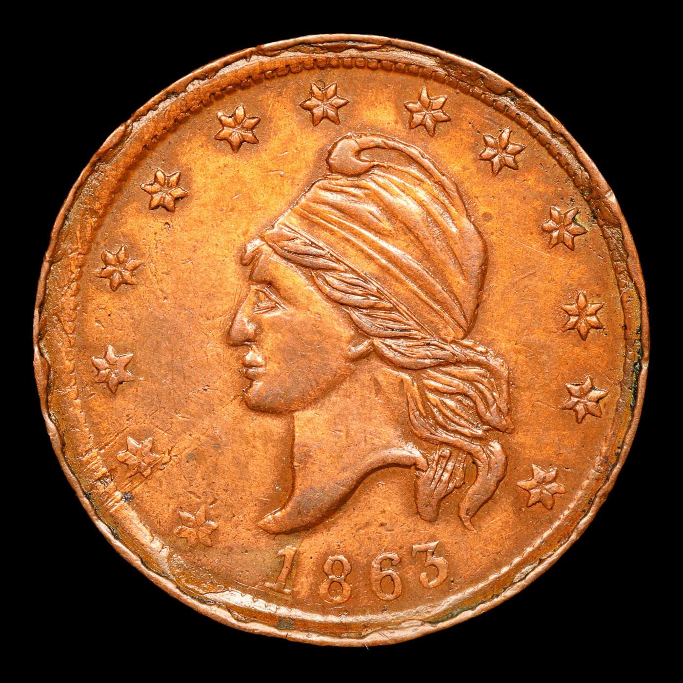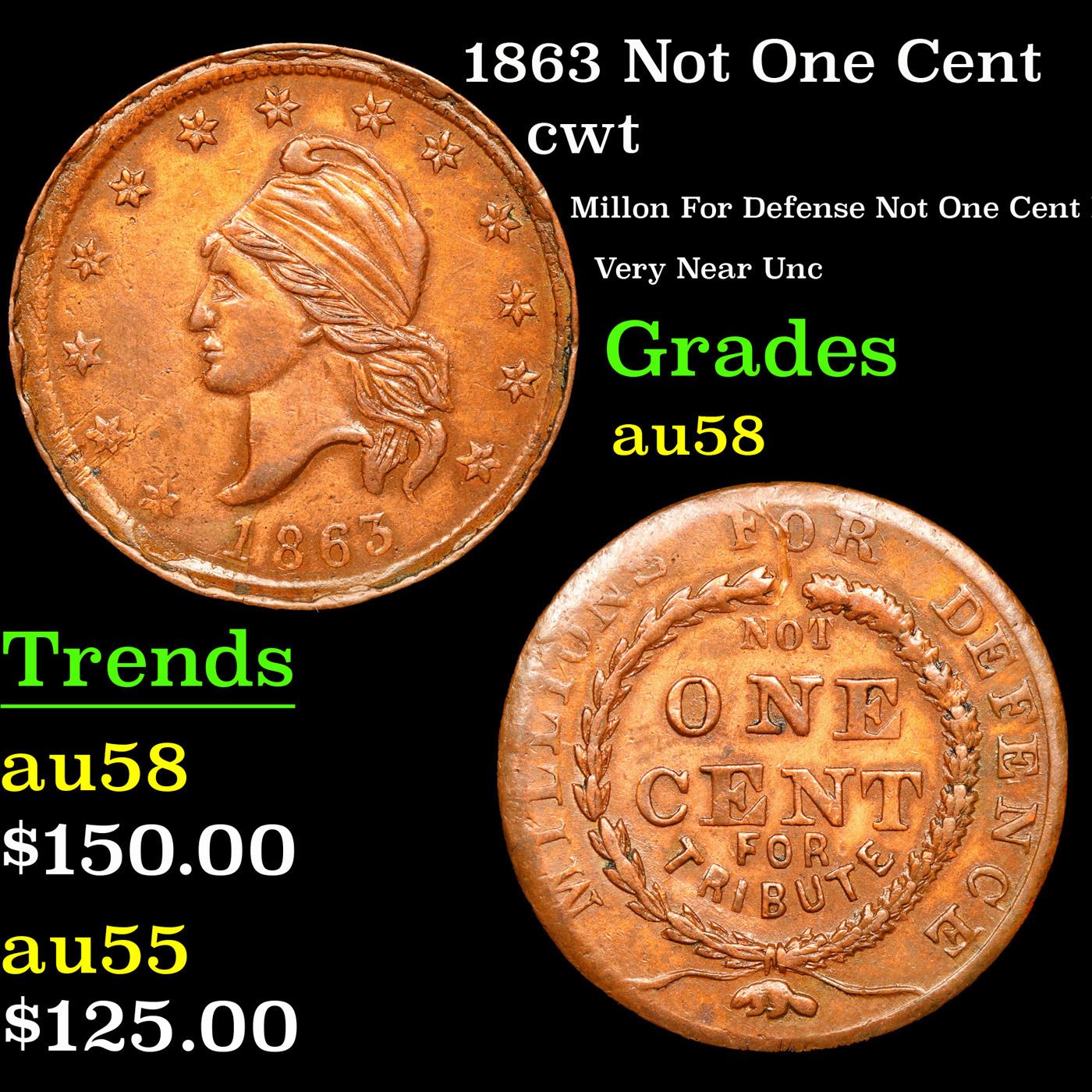1863 Not One Cent Civil War Token 1c Grades Choice AU/BU Slider.