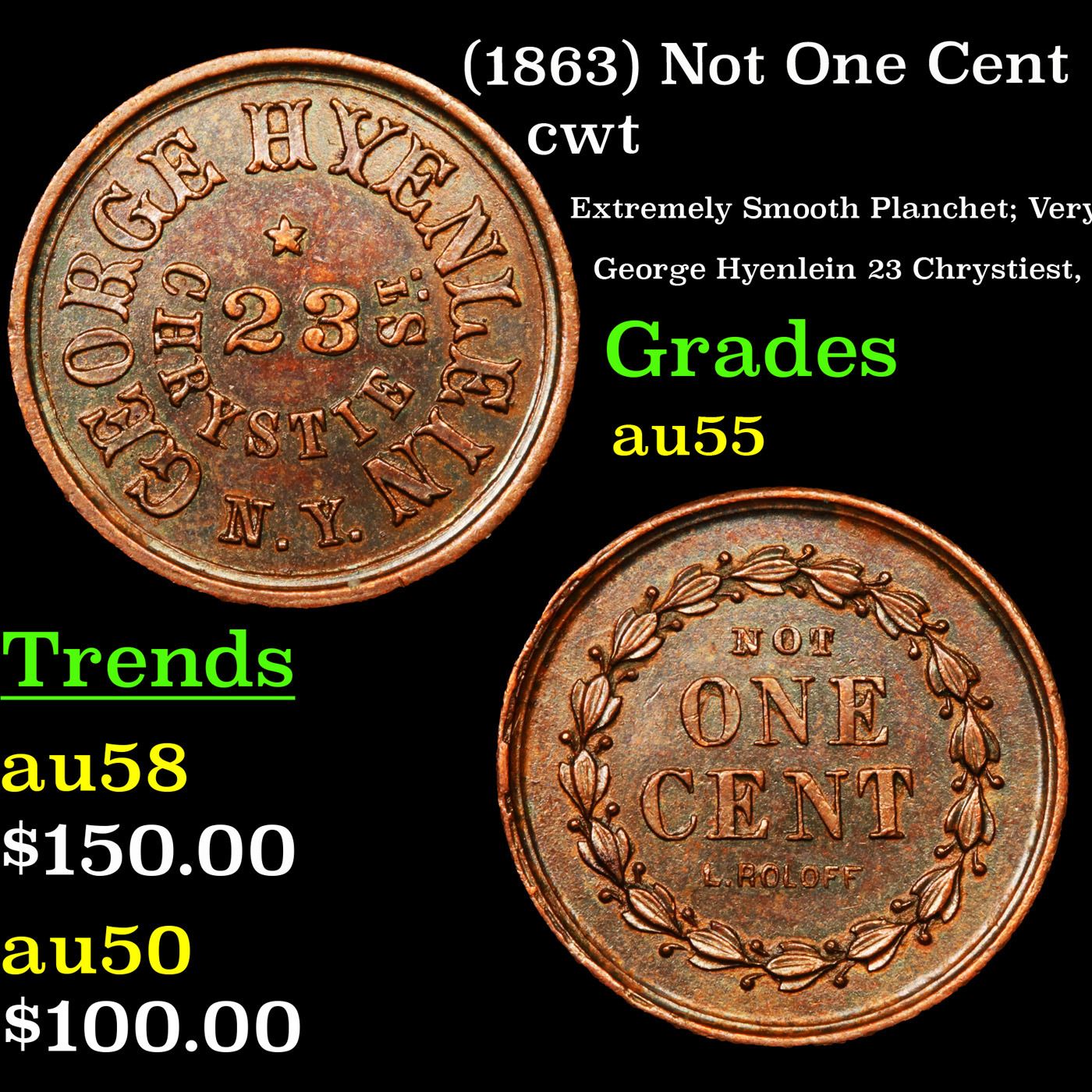 (1863) Not One Cent Civil War Token 1c Grades Choice AU.