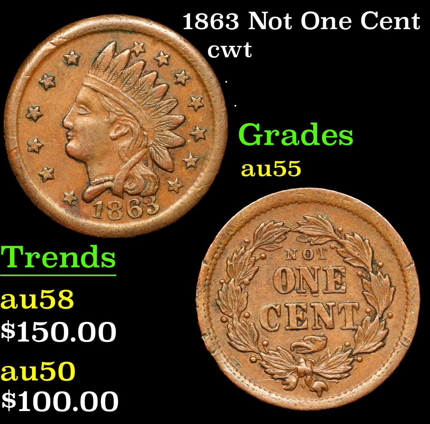 1863 Not One Cent Civil War Token 1c Grades Choice AU.