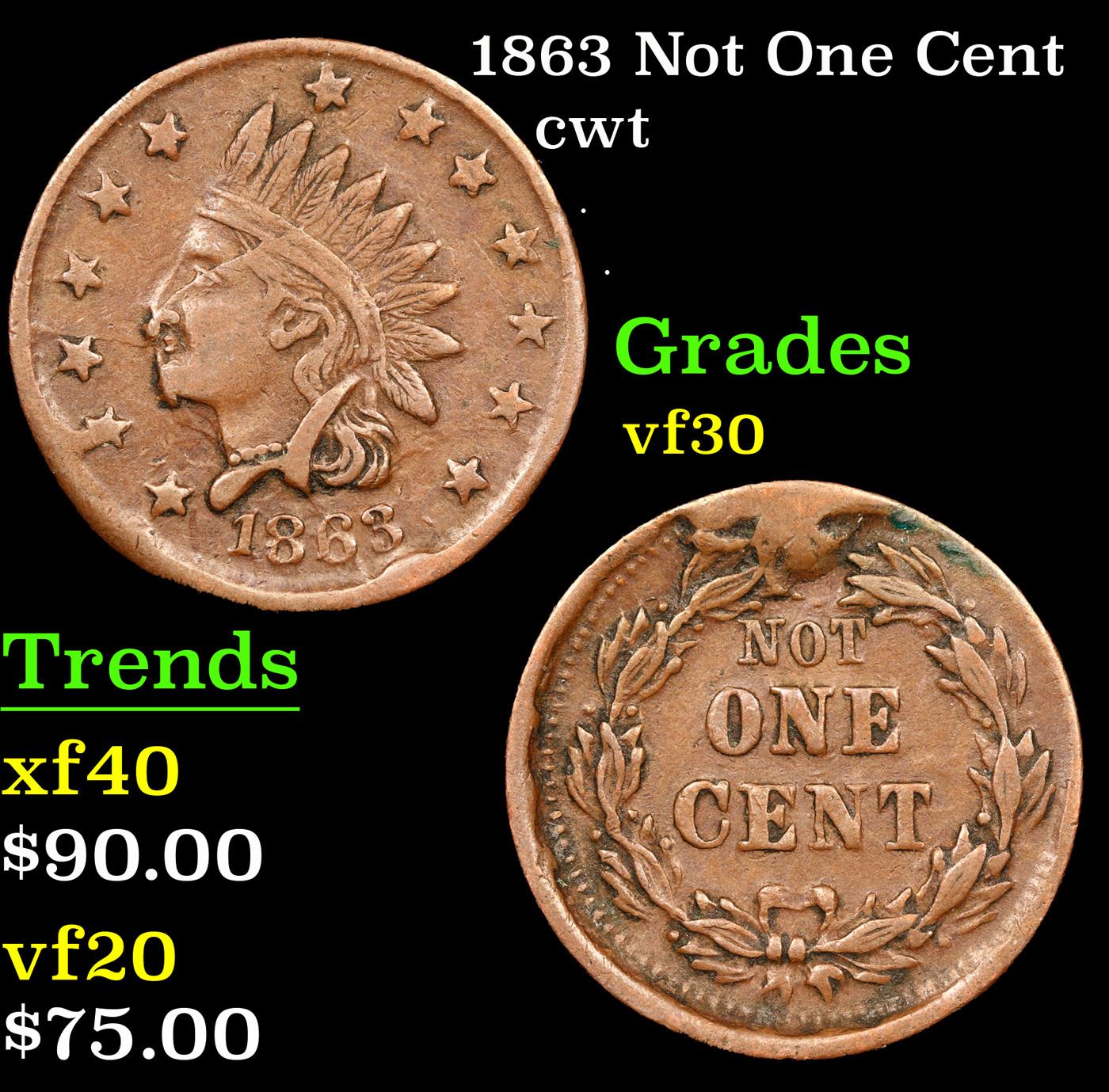 1863 Not One Cent Civil War Token 1c Grades vf++.